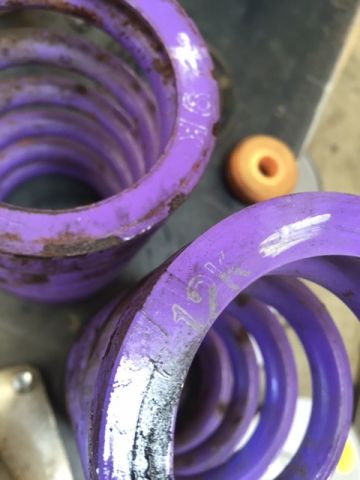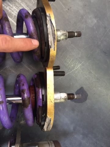 The coating has come off in some places on the springs due to normal wear and tear. The rear struts have a notch in them from the previous owner. I'm assuming its to help with clearance to the wheels. It won't affect the structural integrity of the top hat.