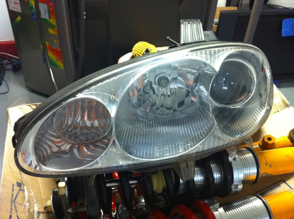 99+ projector headlights, each has one missing tab but you can still mount them fine or jb weld on a secondary tab. the lenses themselves are in good shape with no haze