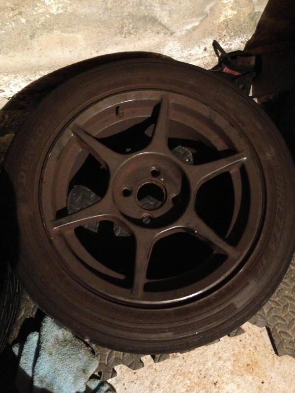 205/50/15 Dunlop Z2 Star Specs used on the street for not even a month. I would say 95% tread left. Wheels are strait, brake dust caked in.Includes metal hub rings for Miata.