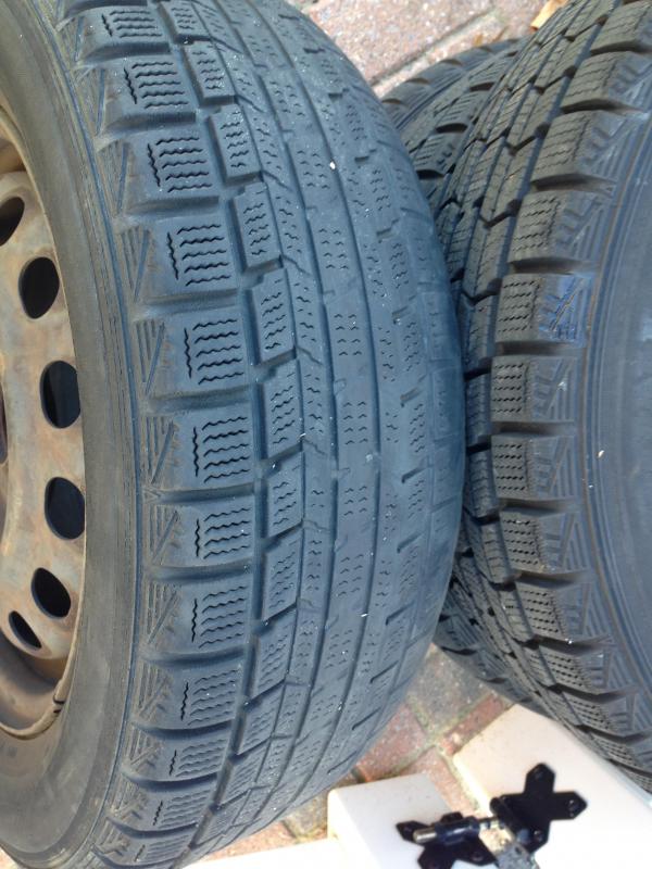 Honda Civic steelies With Dunlop snows.$200 2 with 80% 1 with camber ware, other with 50%.
