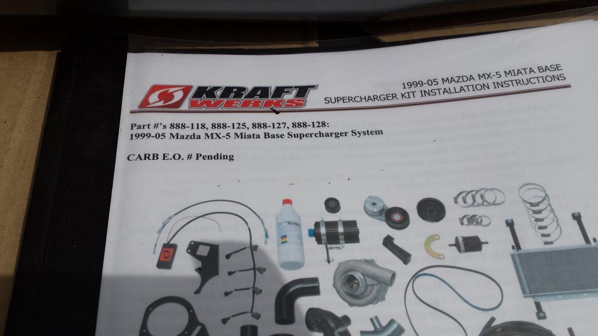 Up for sale is my "Gen1" Kraftwerks Rotrex kit for a 99/00 Miata.
