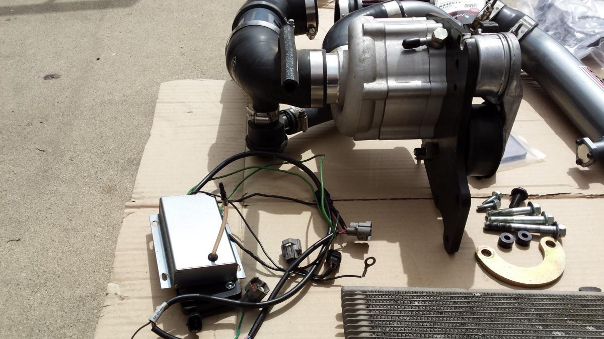 This is a RESTRICTED KIT with NO INTERCOOLER. It includes a DFC piggyback fuel controller that is set up for a stock 99/00 BP4W Miata and will work with NOTHING ELSE. The kit was ordered for a car WITH AC & PS and that's what the belts are sized for. If you run this on something without one of those options, you may need to do some legwork to figure out appropriate belt length. The kit as delivered makes about 7~8psi depending on weather and I believe it was originally rated for 180 or so hp in this as delivered "bolt-on-and-go" restricted configuration. There is definitely room to grow but I'll get into that later.