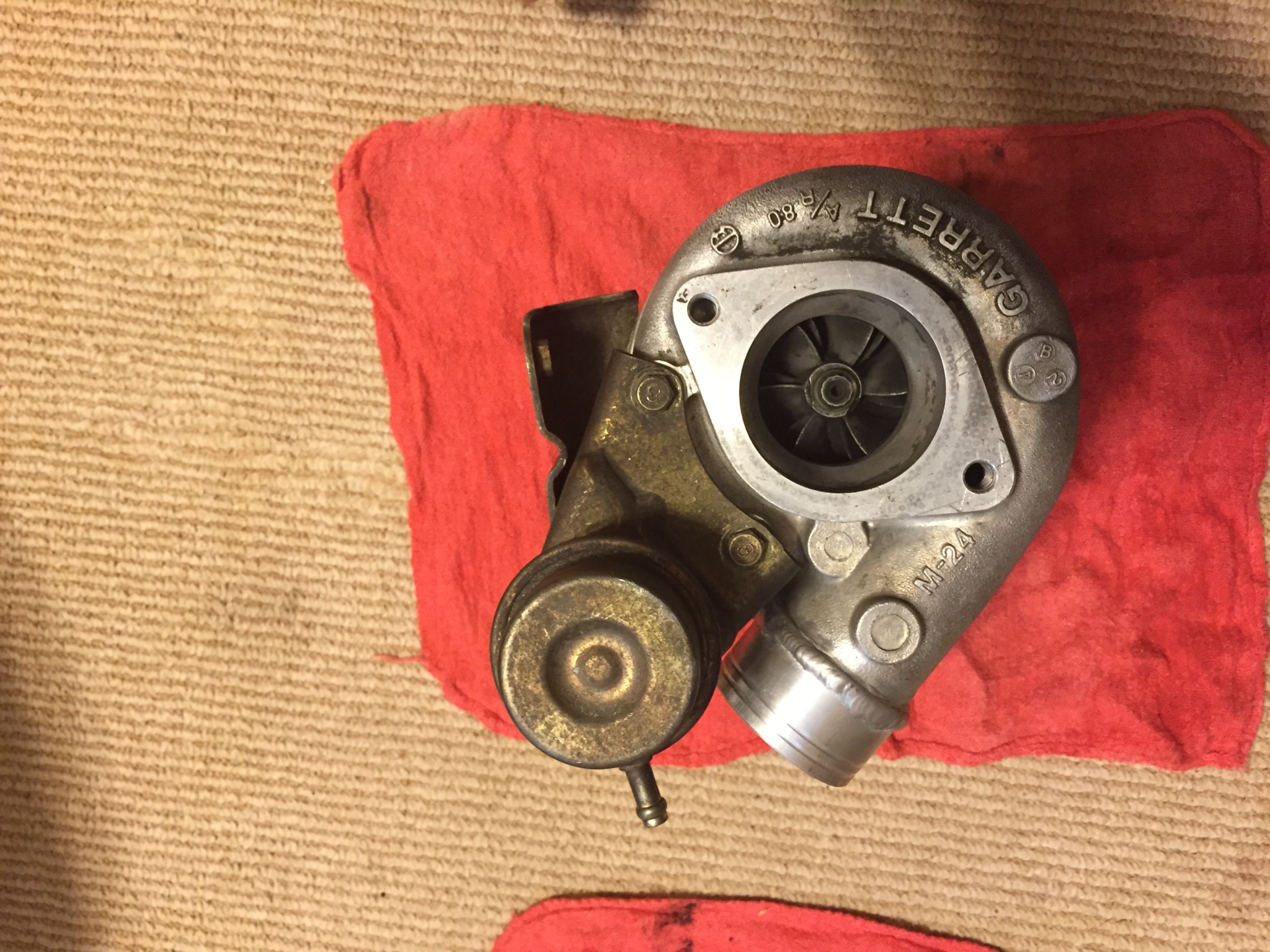 Garrett T25 SR20 Turbo, clocked and modified to work on a side mount manifold. The folks at BEGI chopped off the 3 bolt manifold and welded on an aluminum tube for me, decided to run a T28 that I have instead. Asking $200 shipped