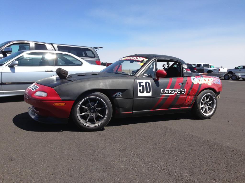 Lazarus's suspension setup. NB bilstein sports with sleeves and eibach springs. 500 front/400 rear rates. Shocks and springs have perhaps 3000 miles total at most. No leaks or damage on any of the parts. Worked great for a track setup while still providing a composed and comfortable ride on the street. Ran this with a big front sway and no rear sway with great success on project lazarus running mid pack spec miata times on worn out tires.