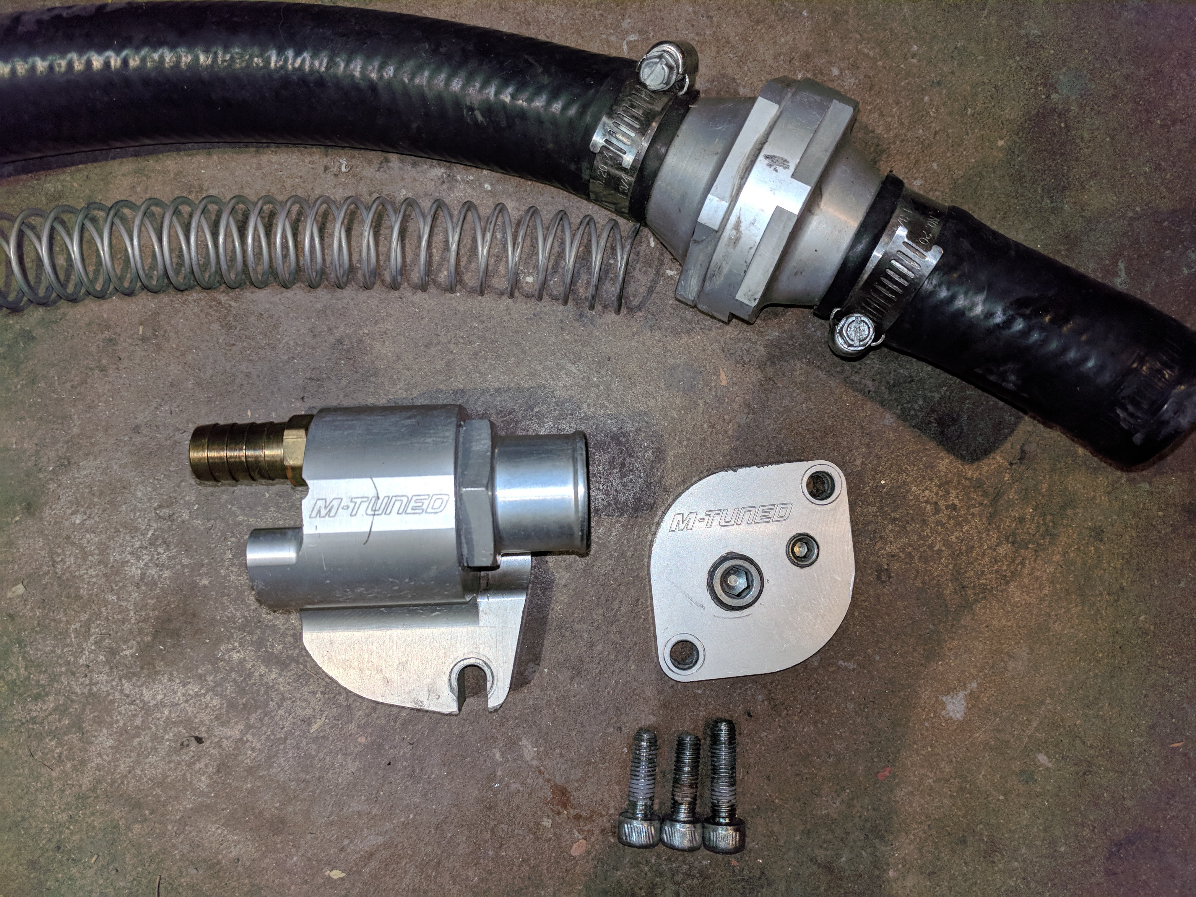 For sale is a used M-Tuned Reroute kit for 1.8L Miatas. Includes all original parts. Thermostat housing and rear adapter were assembled with high quality ultra grey silicone, no leaks. T-stat housing is marked "up" for proper orientation.