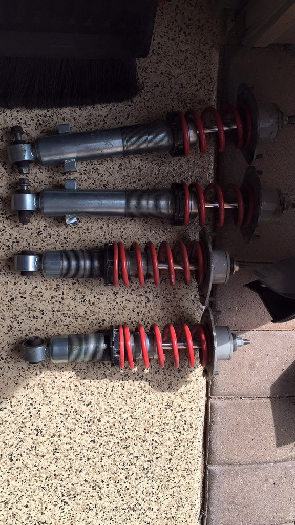 Vmax for an NB1 with ISC tophats 2" inch fronts 1.5" rears one of the fronts have a small ding in it, coils ride very nice and can go super low if that's what you're into. *note* (picture of car is to show height of coils at current settings.) $575 shipped/paypal'd shipped with top hats.
