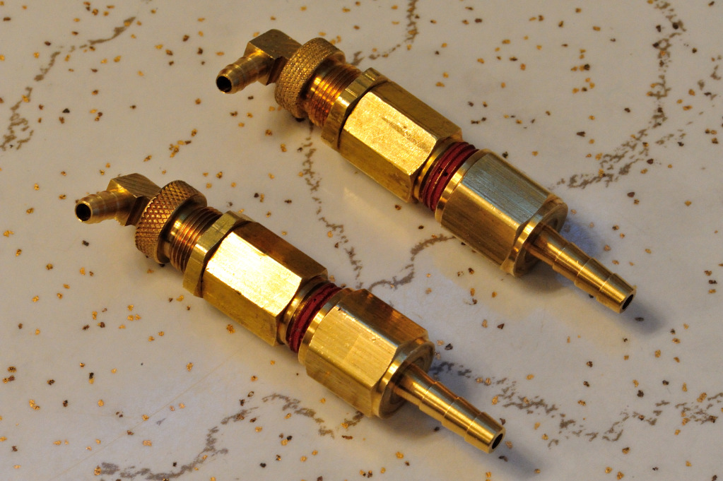 I had a few extra parts laying around for boost controllers and added the remaining parts needed along with some bolts on my last mcmaster order. A .022" vent hole is drilled in the top (see pic). Drilling this hole with a hand drill is not fun and I have already broken several bits. As of right now they are untested, but given another few days I can test them on my miata. The two built before these worked fine so I see no reason these won't work great, too.