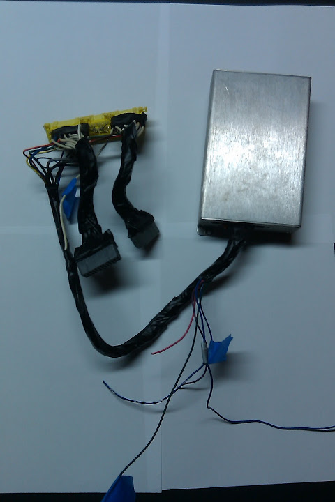 you plug the gray plugs into the stock ecu, and plug the stock harness into the yellow connector. Remember, all I have the stock ECU doing is idle, fans, and A/C.