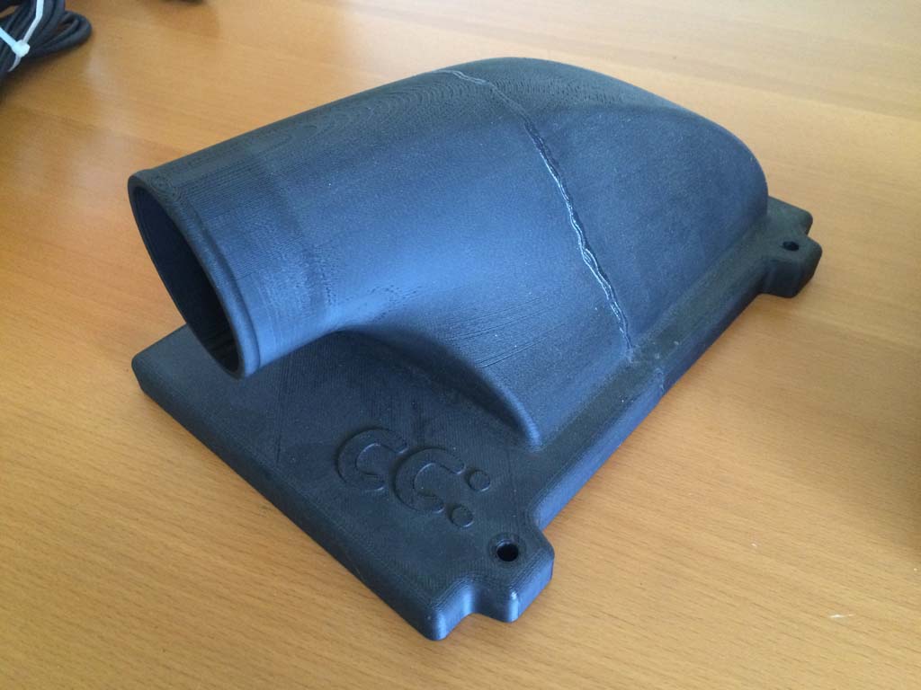 I designed the airbox top - it was printed on a Dimension SST machine in 2 pieces (too large for 1 print). It was split during the build file to have a wobbly edge for more surface area to glue. It works fine. If you don't like the glued edge look, you can sand, fill, prime, and paint the box - it's ABS plastic. You can make it look as finished as you'd like.