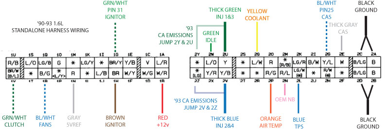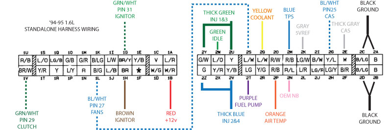 The difference between the 1.6L harness and 94-95 harness is very minimal, you'd only have to move a few wires around on the yellow connector.