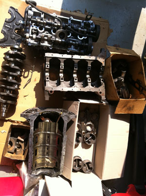 Complete, but disassembled, 1.8L Miata engine from a 1995 Miata, including head. Belfab racing forged rods with Supertech forged pistons (click here for more info), costing $890 alone, and I am including the bored block. These pistons are standard compression (9.0:1), 84mm or .040 over, and the block was bored to match.