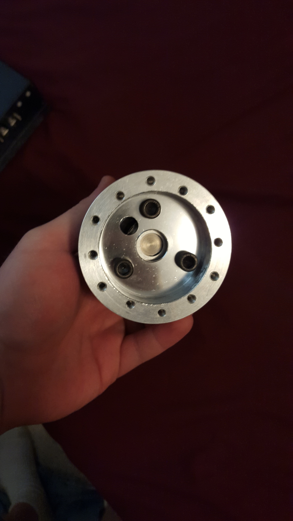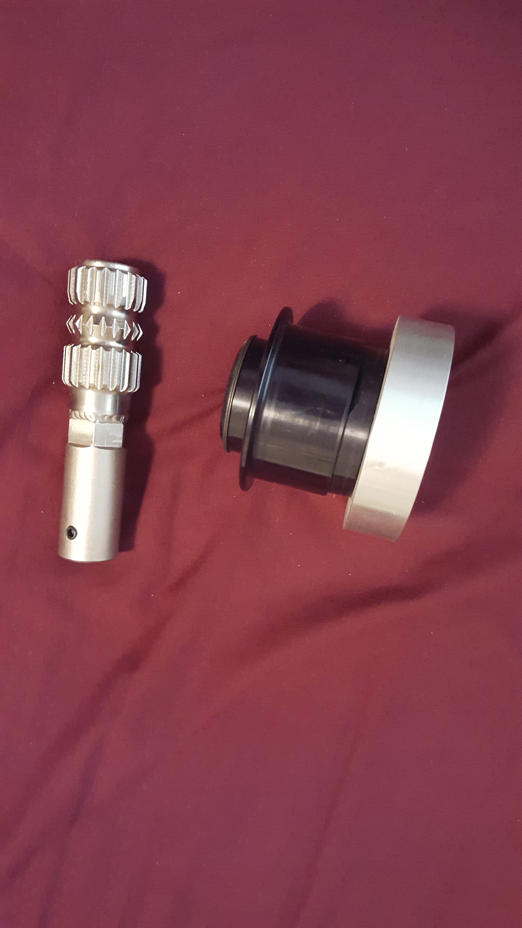 My company sends parts out to be nickel plated on a regular basis so I threw the splined steel piece in with one of our nickel batches to add some corrosion resistance. The nickel can easily be ground off on the end if you want to weld the adapter to the steering column instead of using the set screws. The splined fit felt good before the nickel plating, but it feels even better now. Very tight, but still easy to get on and off.