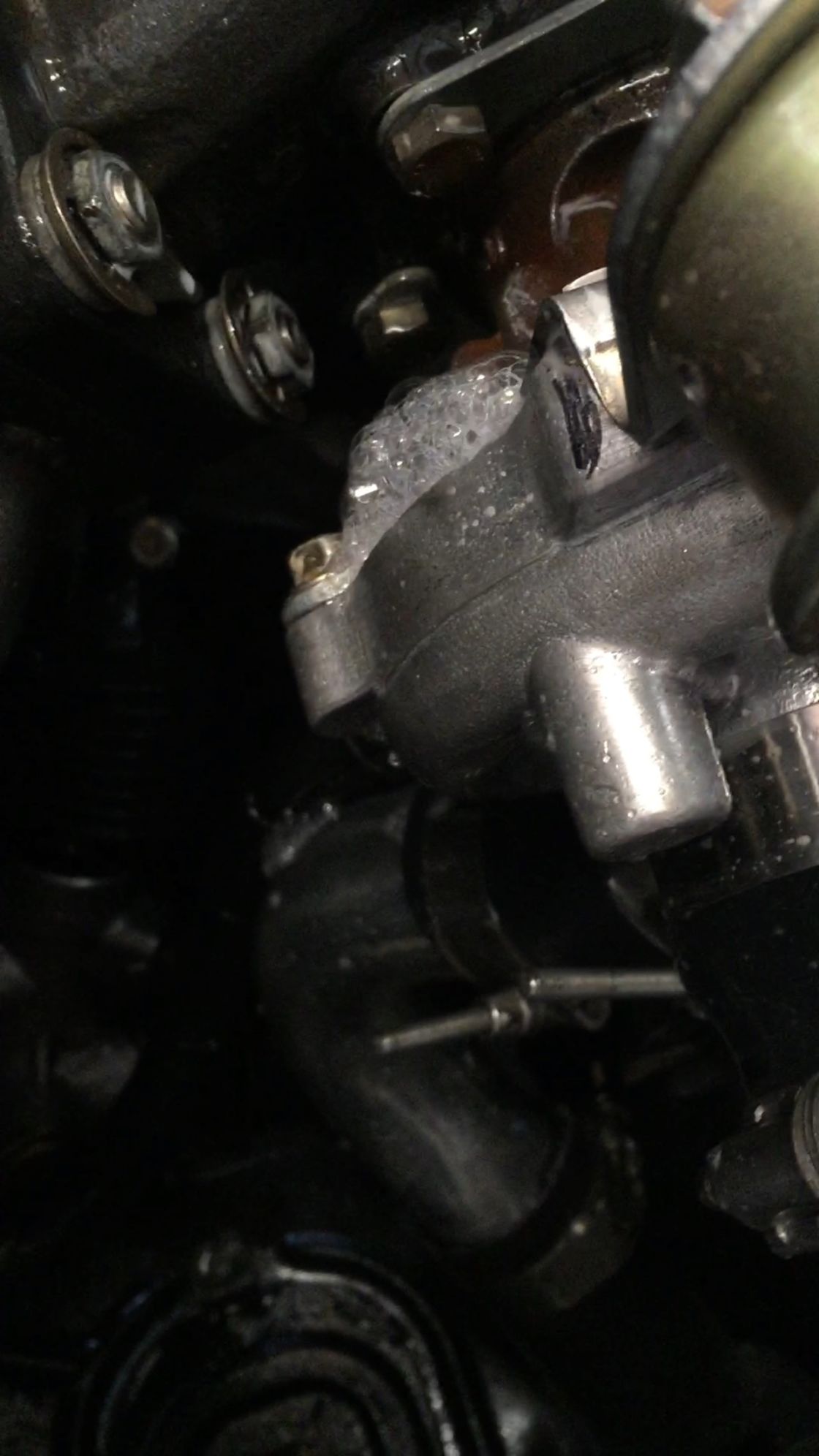 I'll I did was regulate the air and used a pvc with a brass nipple and used a vacuum line to pressurize the system. Basically the standard YouTube setup that people post. I then took soapy water and sprayed everything looking for leaks and this is the picture of it leaking on both sides.