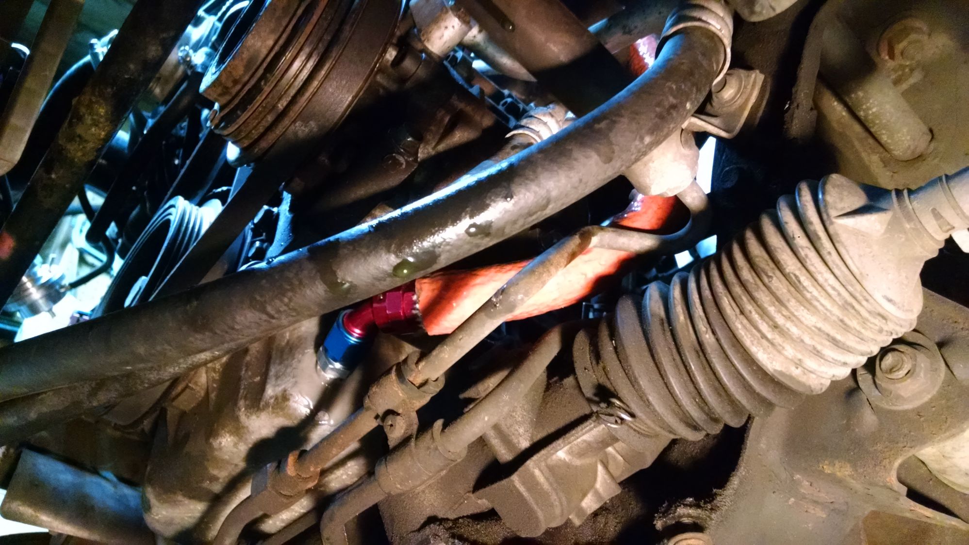 Here is a pic of the drain line going around the a/c compressor, which is something I wanted pics of before the install. I am very happy with how it turned out even though I didn't get to see a pic first.