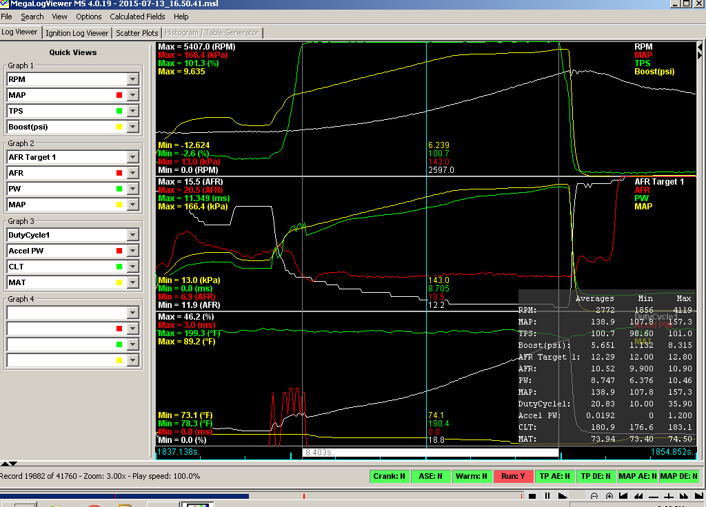 Notice how on all these logs, the wastegate rated point is clear. You can see mine was a 7psi actuator if you look at the knee point on the boost log.