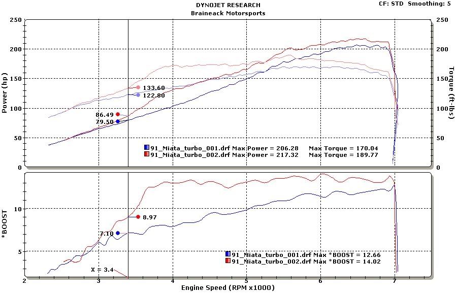 Again what I am talking about is the early onset of boost in which you overshoot the target and then taper down. EVEN your second dyno shows this. You overshoot down in the lower rpm then taper down. Where as just off of WGA by itself you slowly increase pressure.