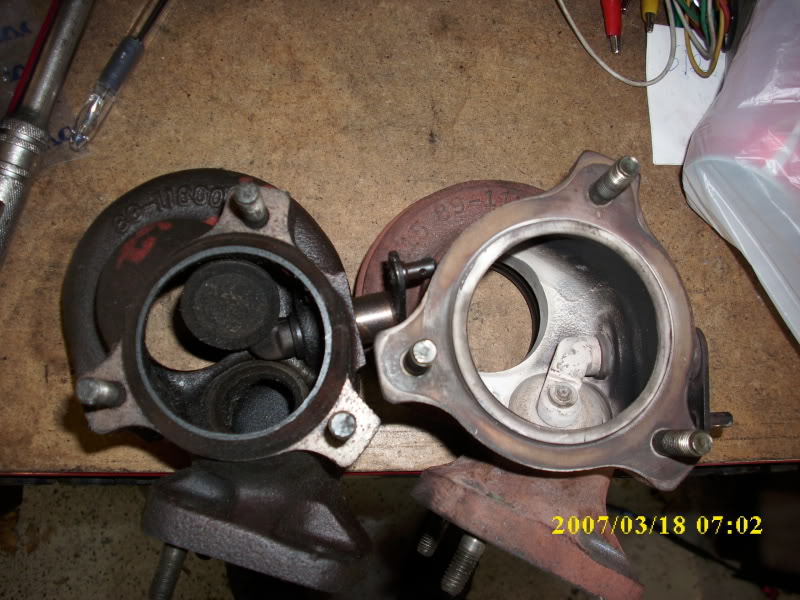 And the flapper actually gets to open more than 5 or 10 degrees like on the Churbos so it's easier to flow through the wastegate hole. I suspect that's the real problem and deezum sort of hit on it in his picture where he relieves some of the material to let it open more although not as much as the SAAB style.
