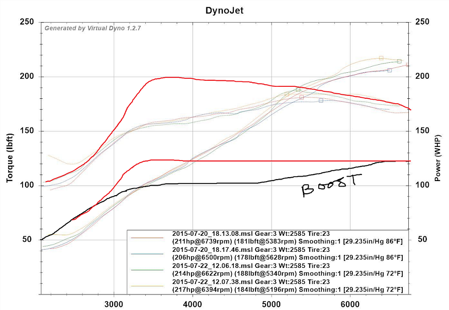 he's down 4-5 psi at 3500rpm from redline. probably would have hit 200tq on that plot had it hit 12psi at 3500.