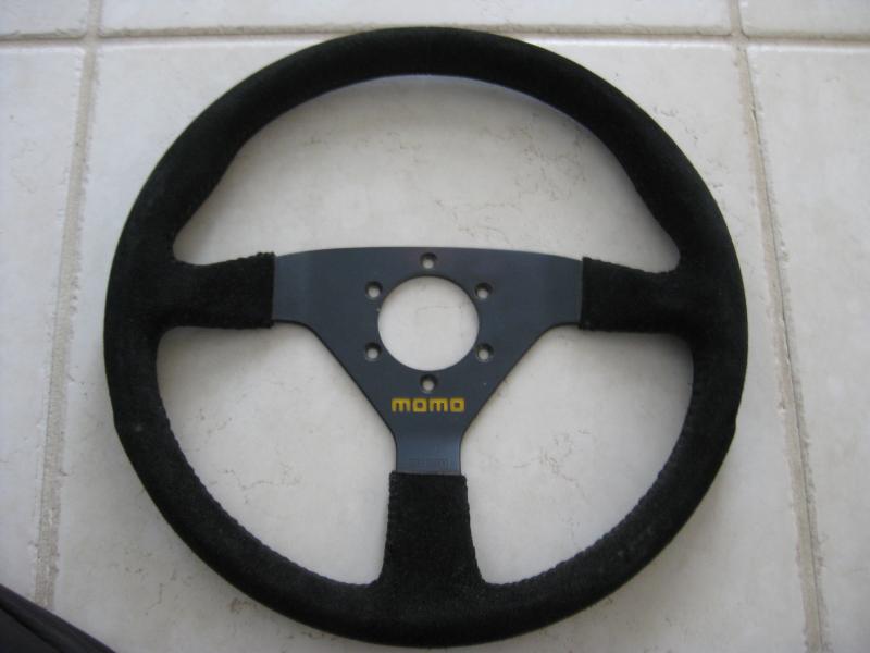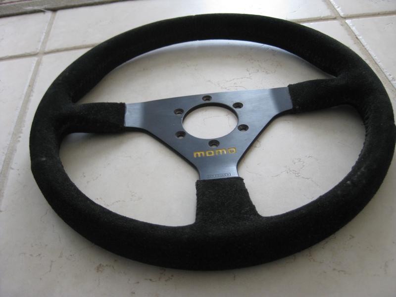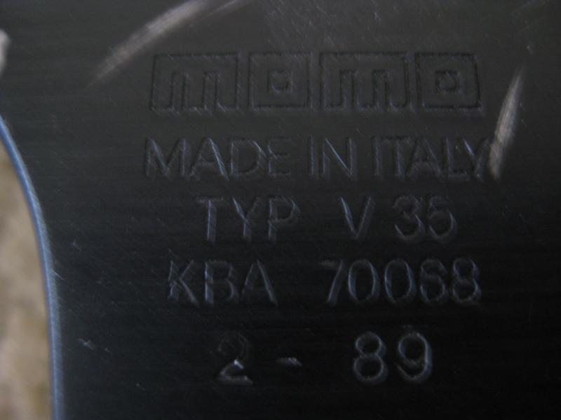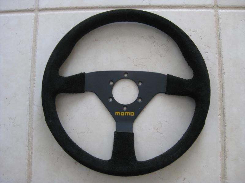 This is an older genuine MOMO Type V35 Monte Carlo steering wheel dated 1989 on the back. From the factory it came with standard black leather but the original leather has fallen apart so it was professionally recovered with genuine leather suede (recover cost was over $130). It has never been involved in a crash thus it was an ideal candidate for being recovered. Please note that since being recovered, the wheel has been in storage sometimes sitting on its face and has now matted down in some spots. There are also some imperfections in the hide that can be seen on the wheel if you look closely. This wheel is now most ideal for someone who wears gloves and wants that great grip. This is what is considered a 350mm wheel (roughly 13.5" wide) and matches up perfectly to another 350mm MOMO wheel I happened to own. This is the only one I have like this so once it is sold, it is gone. Please look at the photos carefully because the buyer will receive this exact wheel pictured here. There are also scratches on the back (does not affect performance obviously and not at all visible when mounted in the car of course) but are present and photo documented accordingly.