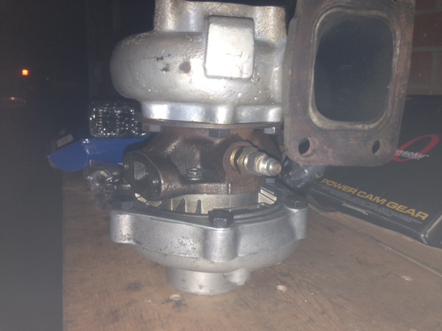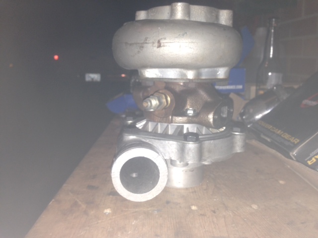 It is a custom t3 ball bearing oil and water cooled. Ceramic coated ex Housing. I forgot the specs so I have to measure the wheel first