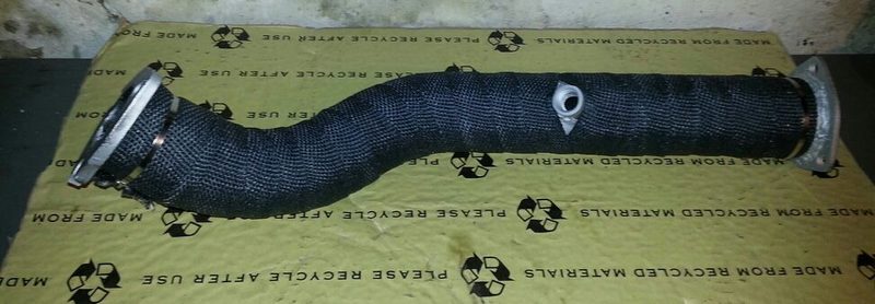 - Downpipe with O2 bung, sealed and wrapped in fiberglass exhaust wrap