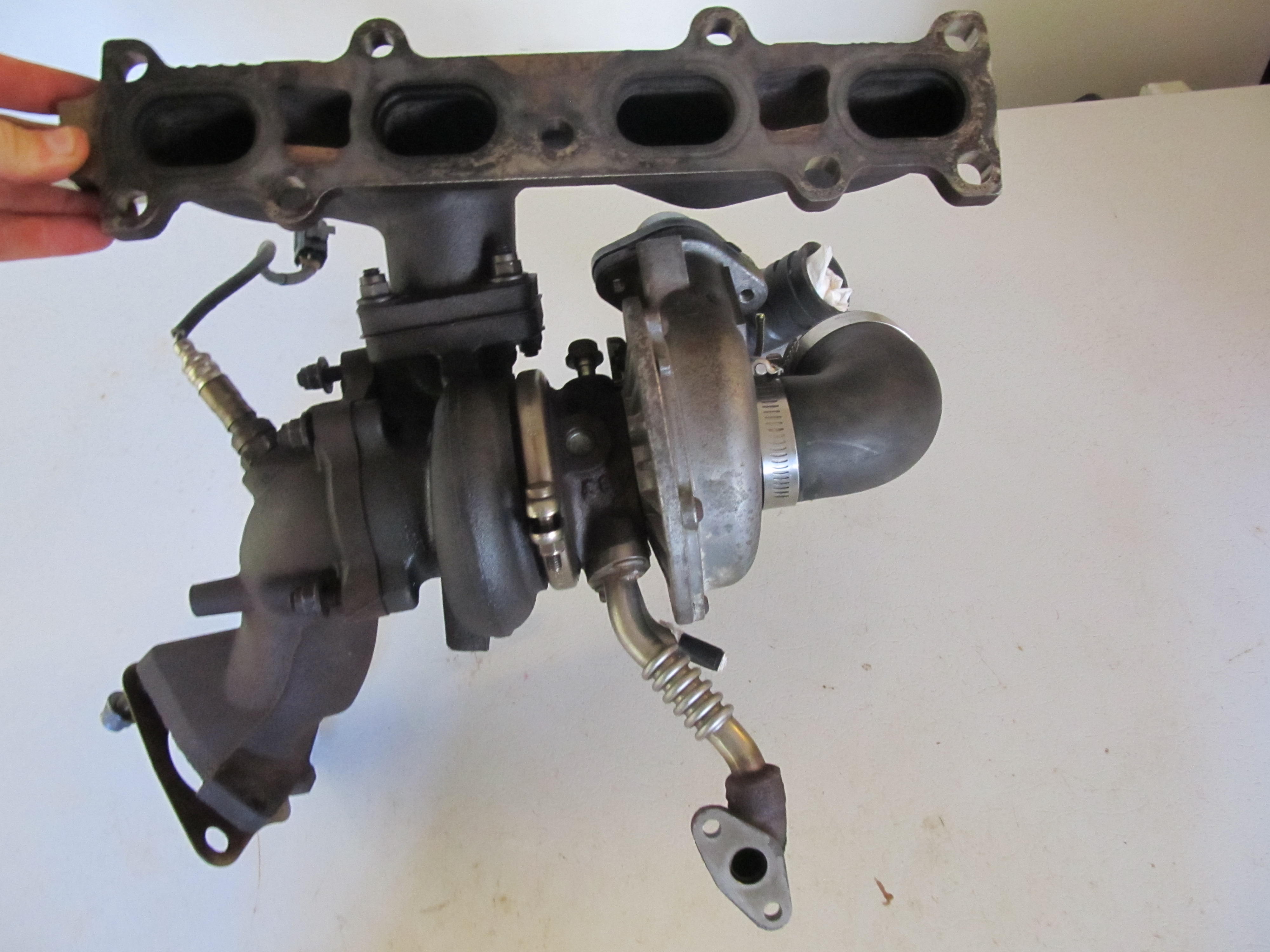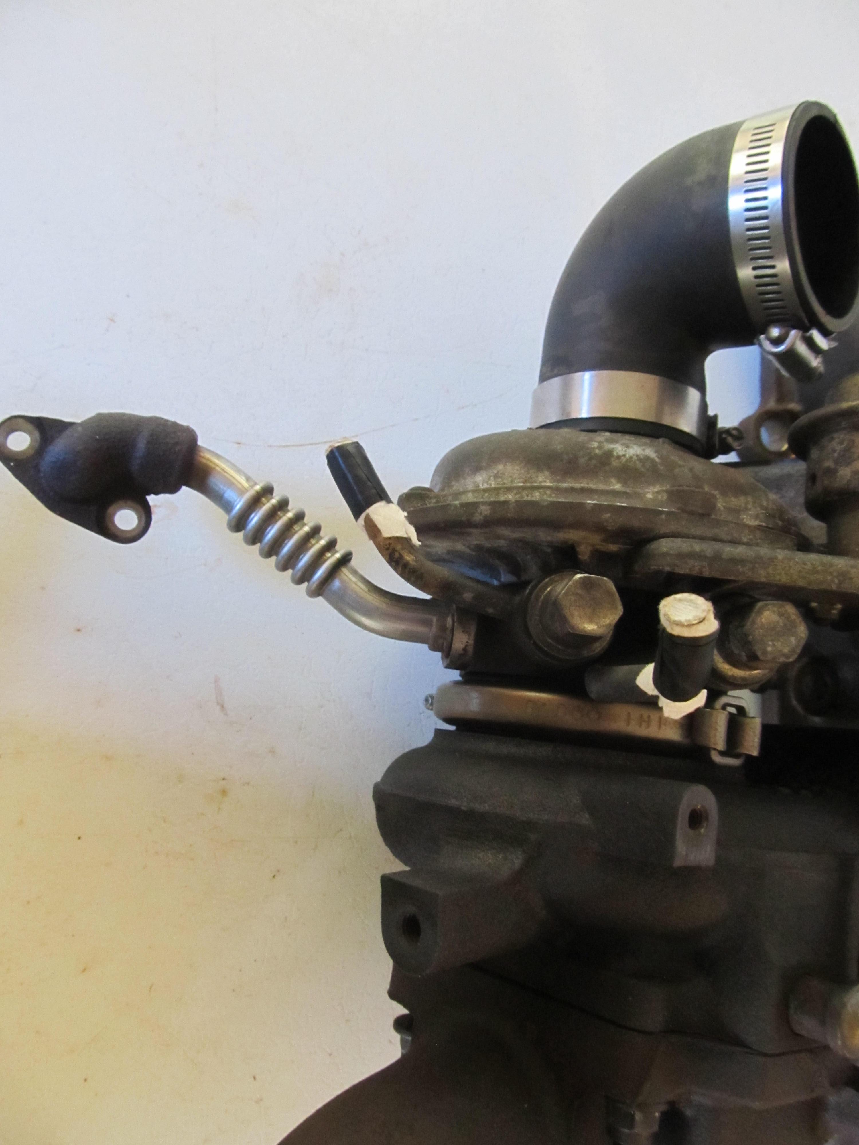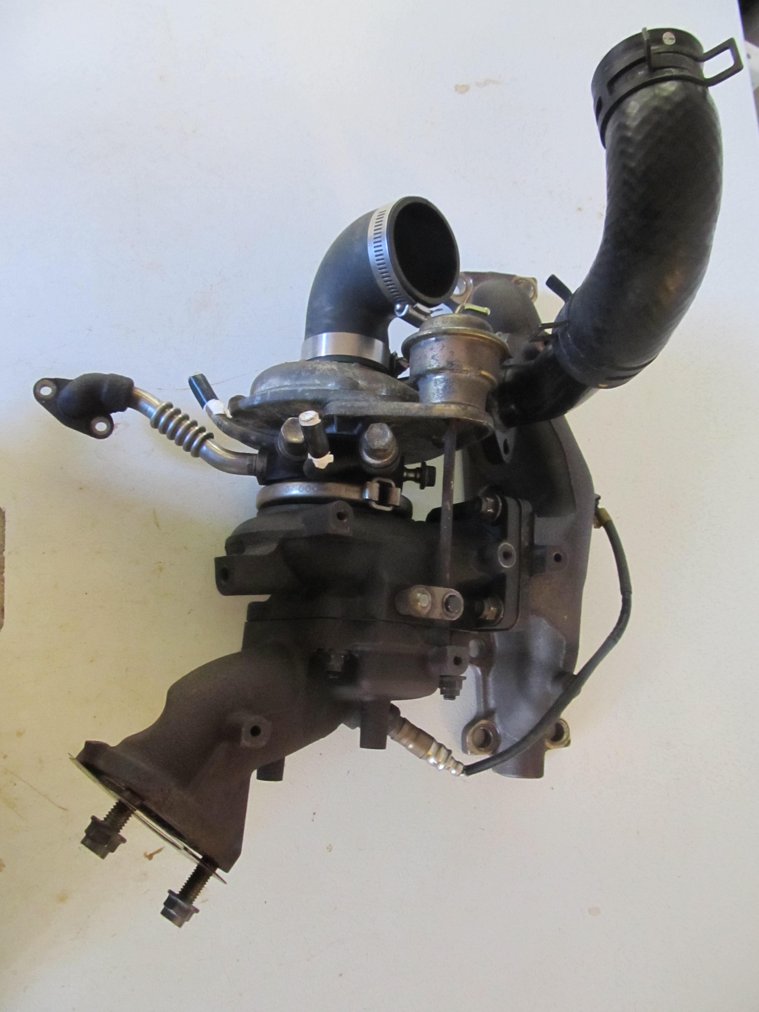 MSM turbo, manifold, and upper downpipe. Water lines are included(not complete lines, just enough to connect rubber lines to), as is the first section of the oil drain. I do not have the oil feed line(I do have the bolt so an adapter can be found/fitted). Heatshields included but not pictured.