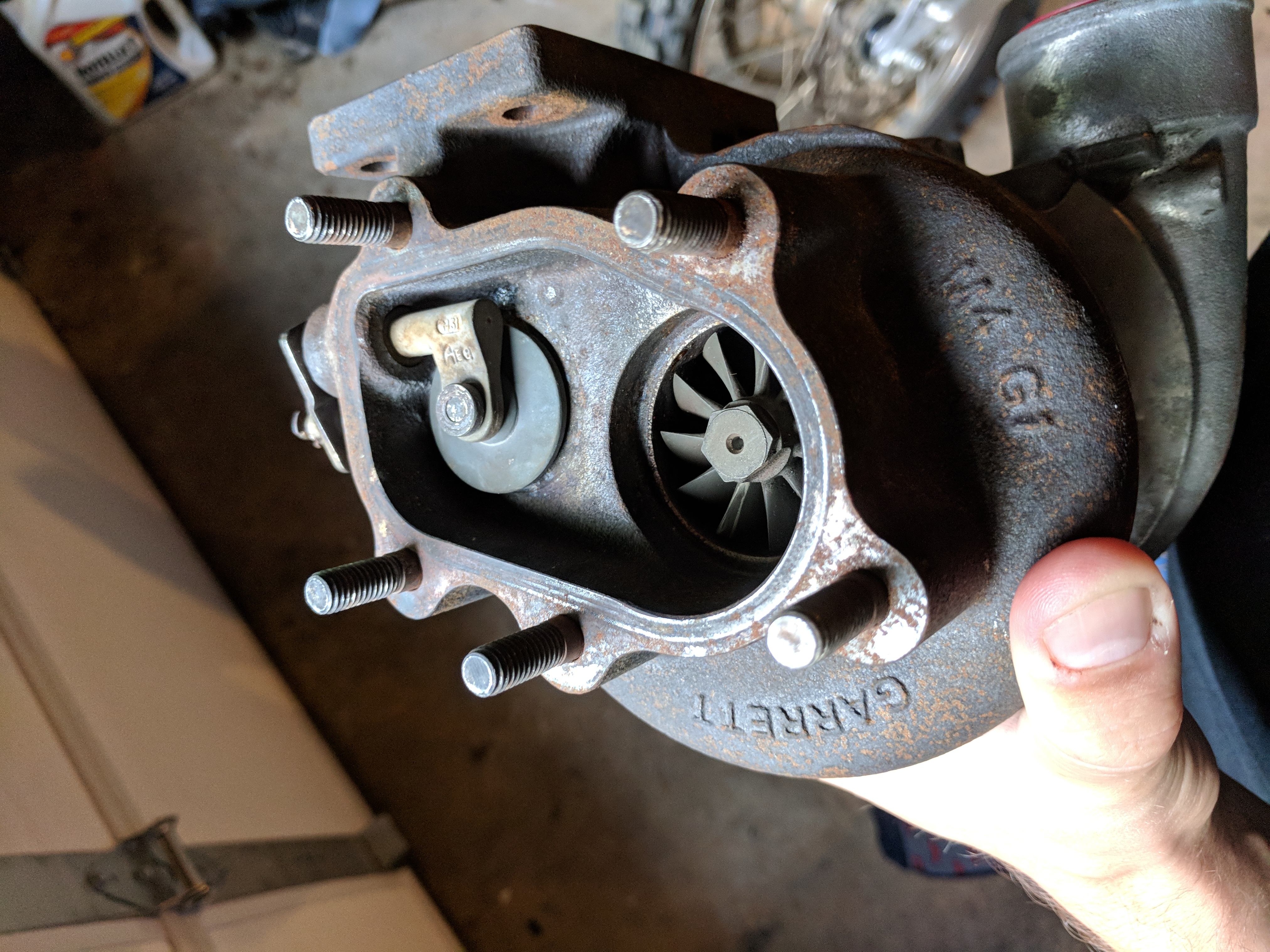 Turbo is a Garrett GT2554R from a Mazdaspeed Protege. Mileage is unknown and part number badge is missing. Needs a wastegate actuator (included one is junk) and a new bracket to fit a Miata. Will also need to be clocked. Appears to be in good shape. I bought it and never got around to piecing together the rest of the parts to mount it. $400 shipped.