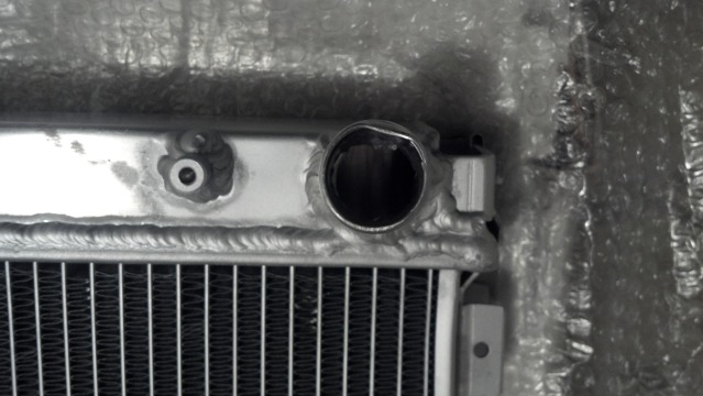Alright so here is the deal, I bought this radiator a couple of months ago from ebay. Long story short it got a little beat up in the mail, I bitched, i got a refund and got to keep the radiator. As you can see in the pictures the inlet and outlets are a little bit bent up, and one side of the radiator is bent along with the mounting bracket. Nothing that can't be easily fixed by someone who has time and the will, I just prefered to buy another. Pics show all of the damage. First $50 + shipping obo gets it. Thanks,