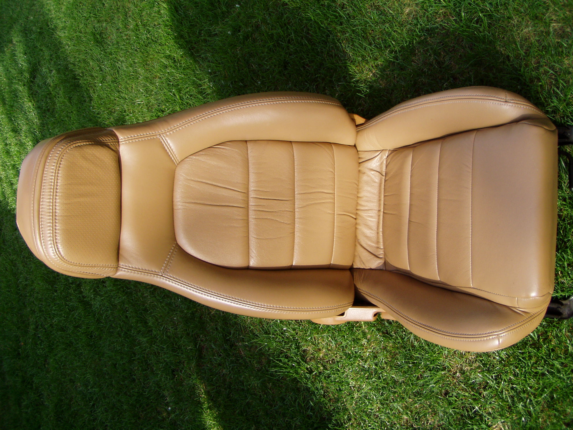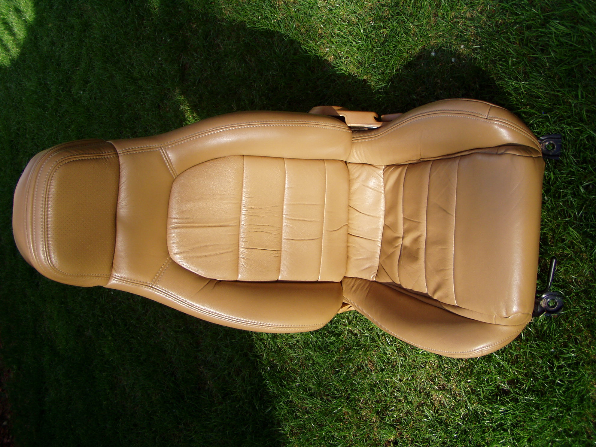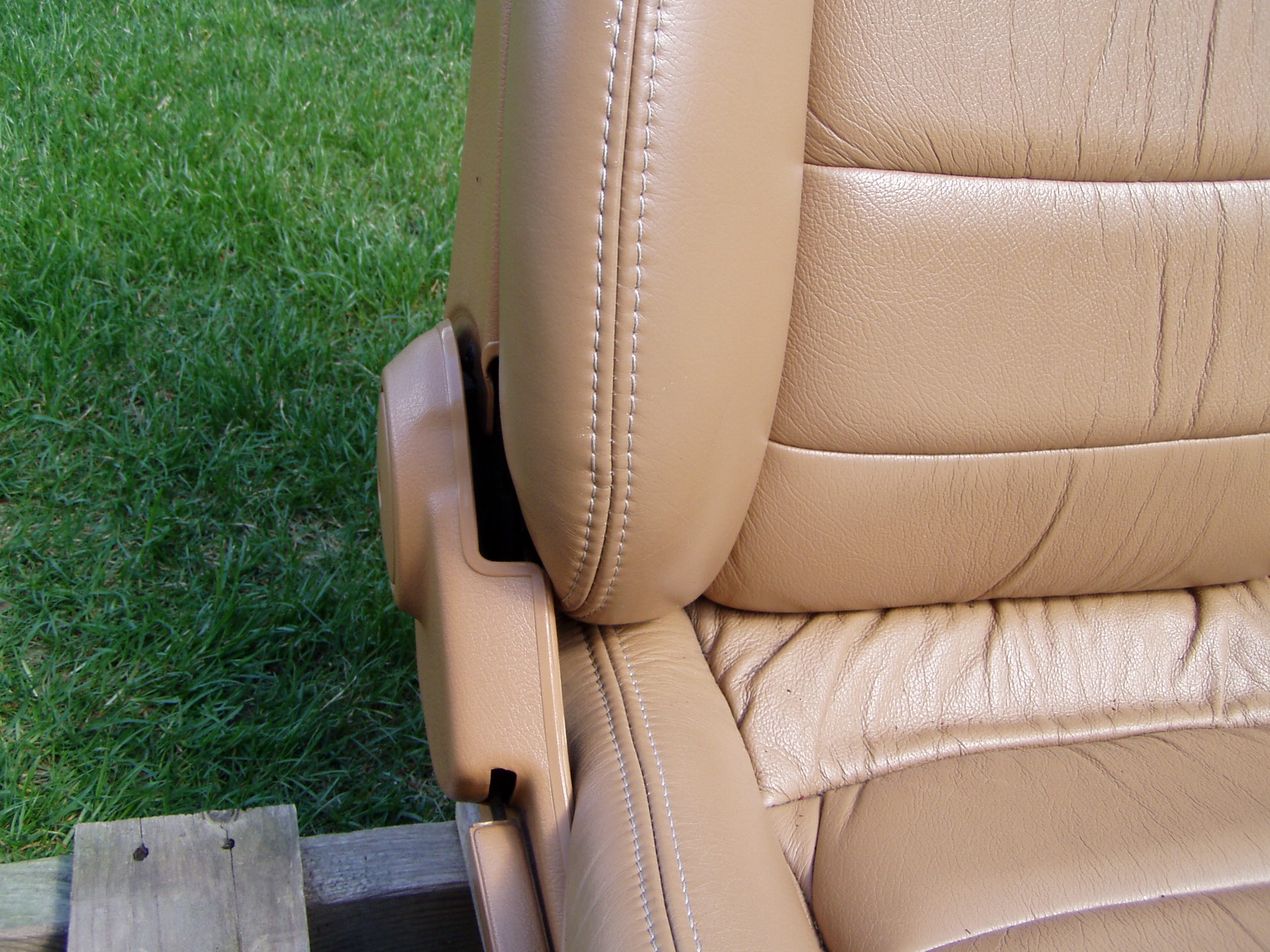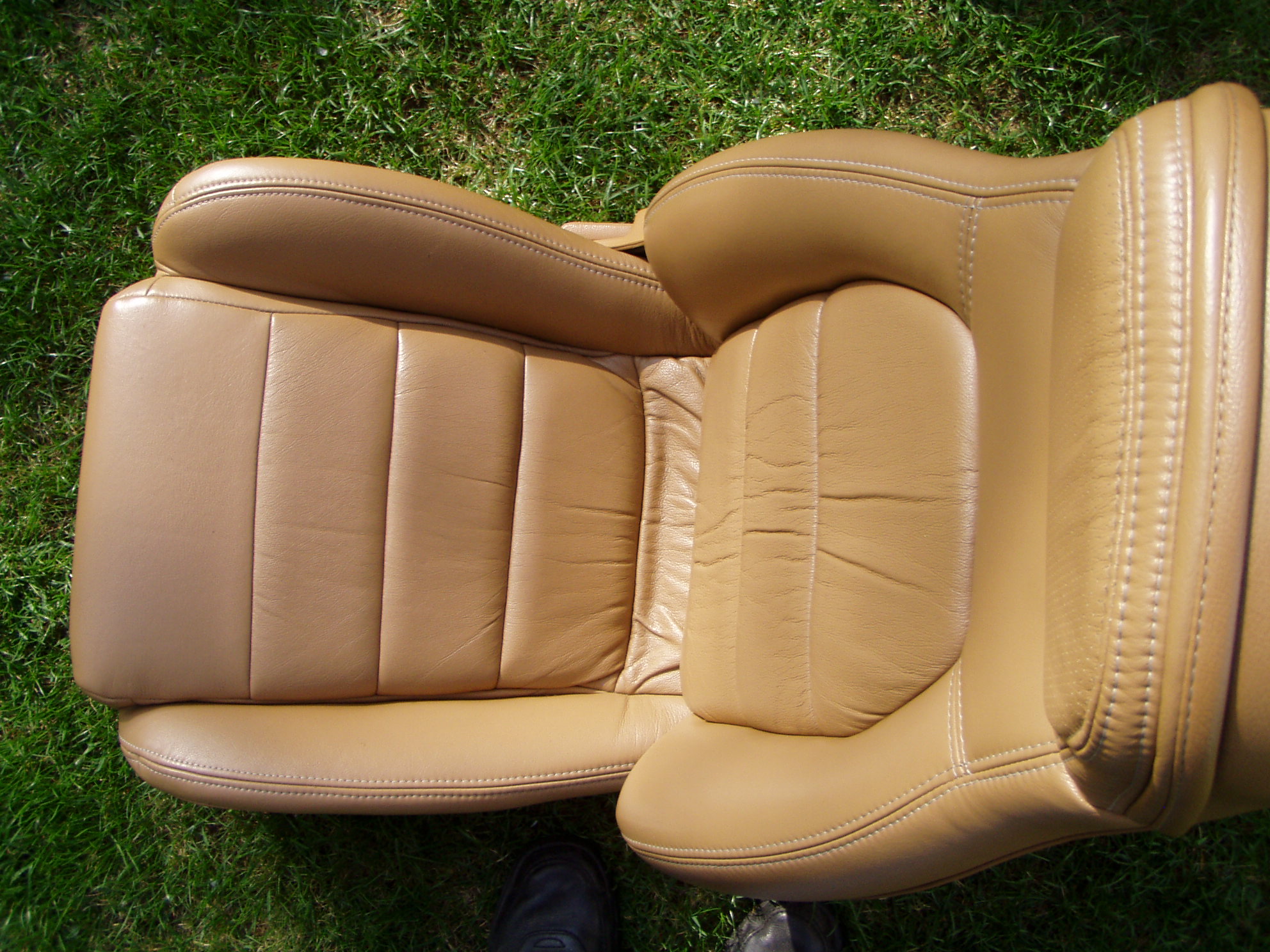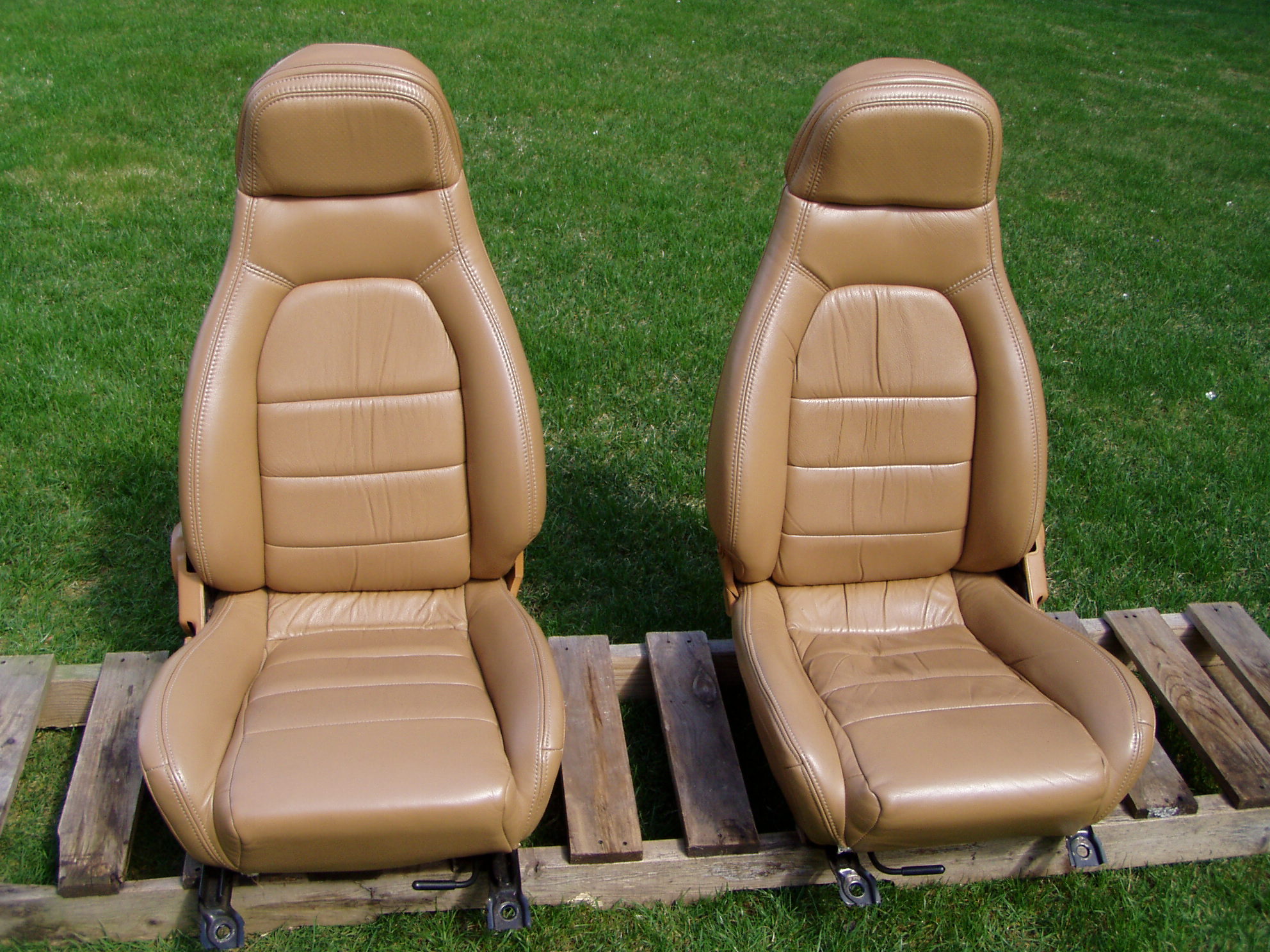 Wellll, they price their seats in this neighborhood and they're ratty and have OEM speakers.. These may not be original, but look and match what I had in my '94 before I had them recovered with Katzkin's. I see no evidence of the seat tilt handle being removed, so if they were redone, someone did a very good job. The Katzkins look nice but the color doesn't match the original and cost was more than $450 to have them done. Not for the concours crew, but a color match, bolt in cheaper solution for someone who has worn out seats and cushions.