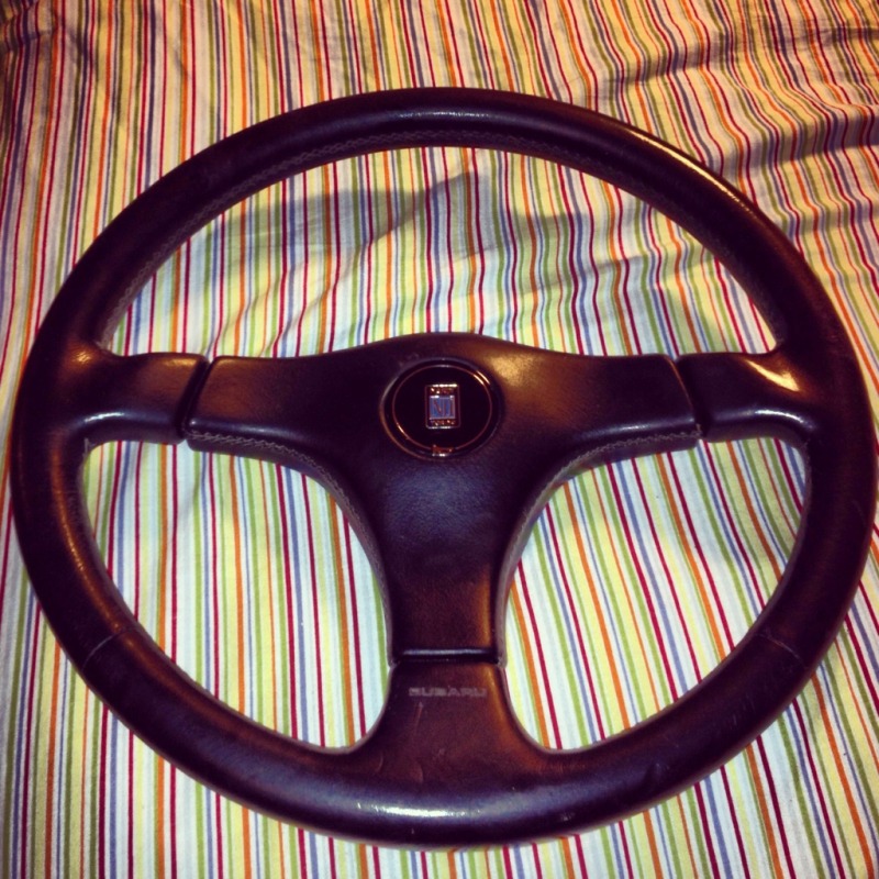 "Subaru" is engraved on the lower spoke but it didn't bother me (It's a JDM OEM subi steering wheel)