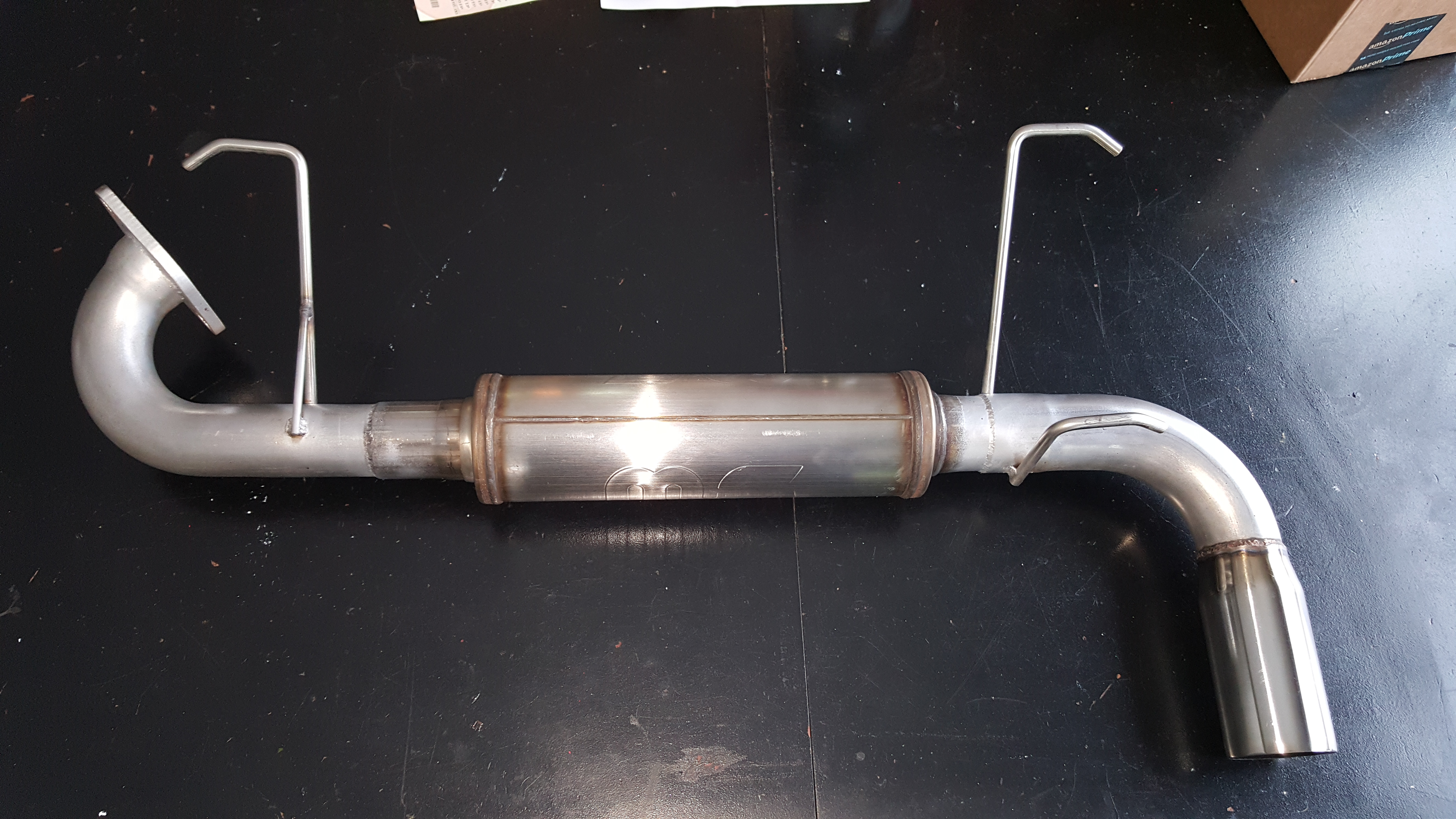 This is a direct replacement for the stock muffler. This system weighs only 9.5 lbs while the stock system is 24lbs. It makes use of mandrel bent 2.5 inch aluminized steel pipes and a magnaflow straight through style muffler. The muffler itself and the 3" tip are both stainless steel. I bought this system in the summer of 2014 and it has under 2000 miles. I garage my car and store it in the winter so there is no rust. It also wont rust because of the aluminized and stainless steel. Sounds great and is very easy to install. Its fairly loud at WOT but still sounds deep. And its pretty tame around town. Several sound clips are available on youtube.
