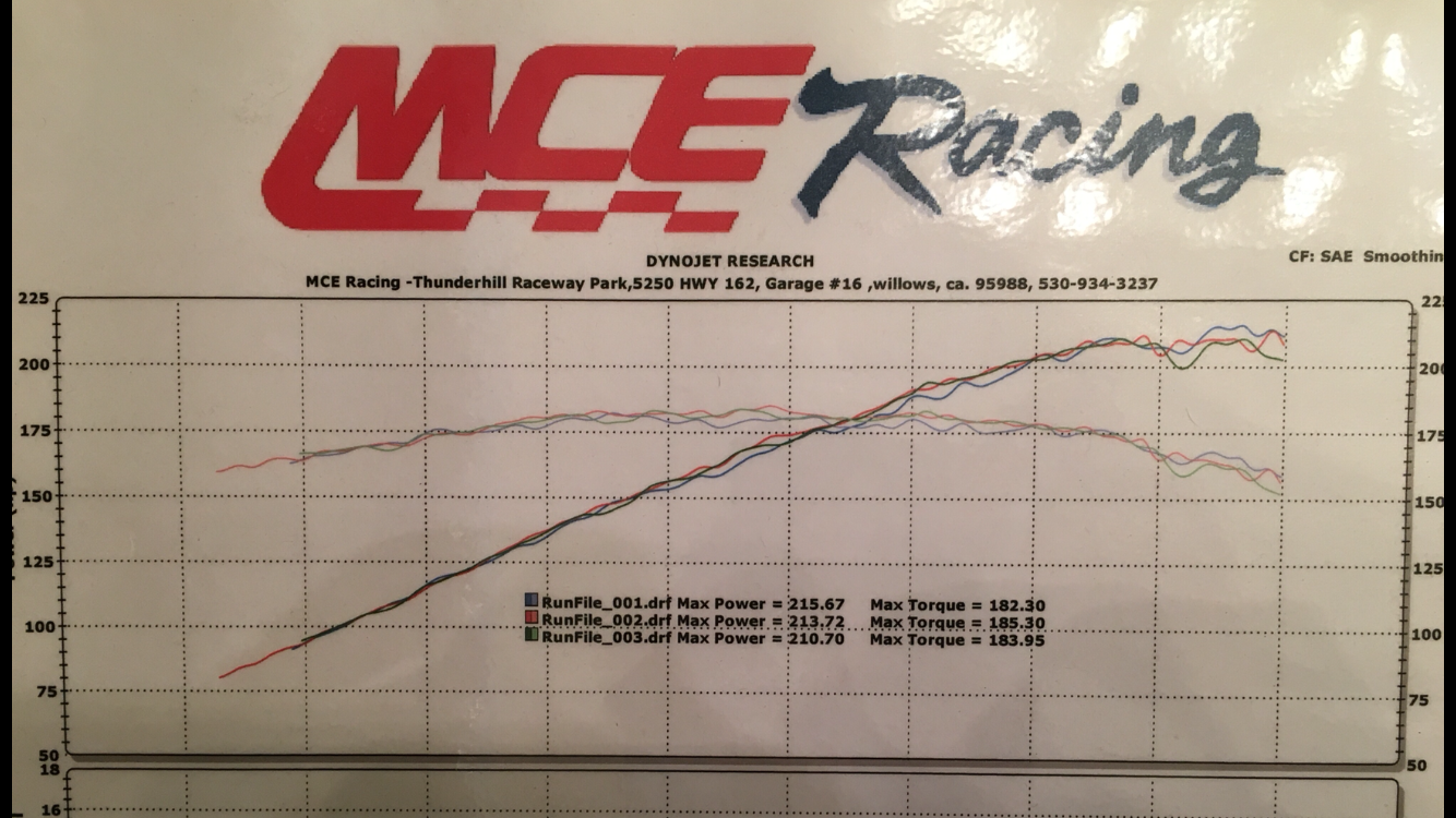 The kit has about 30,000 miles and has been on my car since it was brand new. It currently makes 215whp on E85 and just passed SMOG again on this setup. Even on E85 I have never had an issue passing SMOG (and I don't have a "guy").