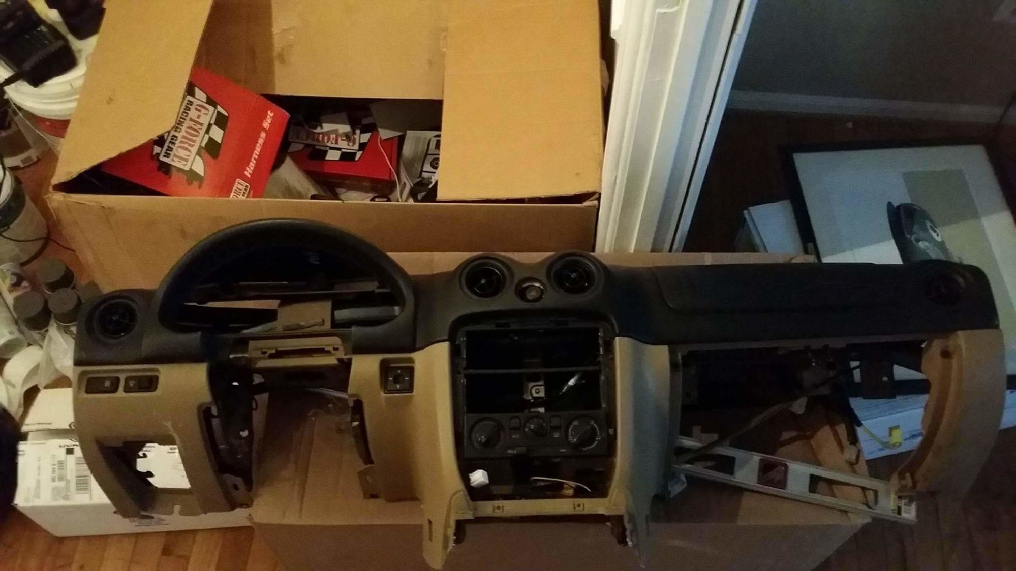 I was going to put this in my 1.6 project car but I decided to just throw in a crappy dash I had sitting around in it. It has all of the wiring to my knowledge, hvac controls, and gauge hood. It's not perfect but doesn't have cracks.