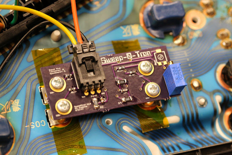 The Sweep-O-Tron board allows proper scaling of the speedometer while enabling you to keep your existing odometer.