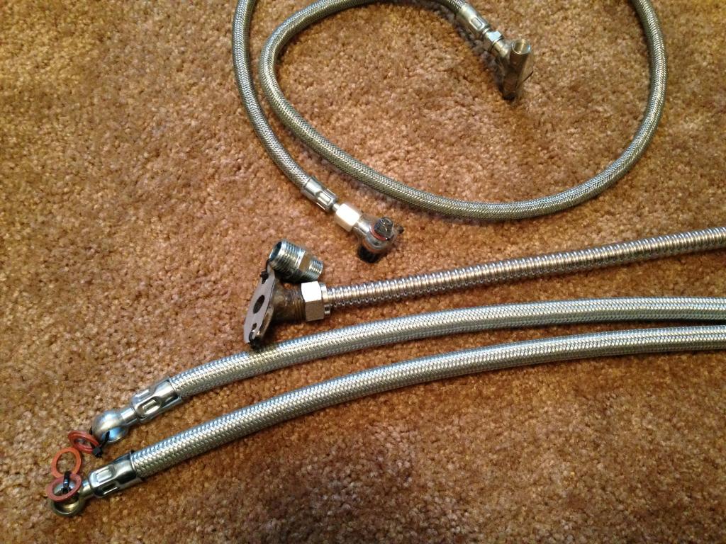 New unused Sturvo built stainless steel turbo manifold and 3" down pipe for use with subaru turbo on 1.8 na. Includes gaskets and braided stainless coolant and oil lines with fittings. Asking $550 shipped.