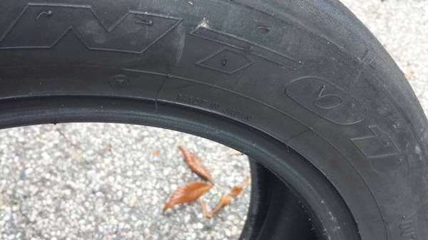 Tires were run on a mostly-stock Miata for track days at Lime Rock. The wear is not completely even, but there is still plenty of meat left on these for track days or autocross. They have always been bagged and stored inside the house (these tires can be damaged by freezing temps).