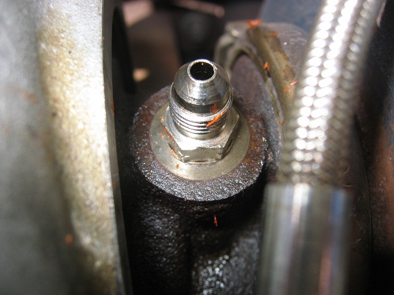 I'm having a small issue at the turbo. Look closely and you'll see the adapter doesn't cover the entire opening which is beveled outward at the very top. I've been using a washer, but because the threads don't go all the way to the nut, and there's an indent between the threads and the nut, it's very difficult to align and I still get small amounts of oil leakage.