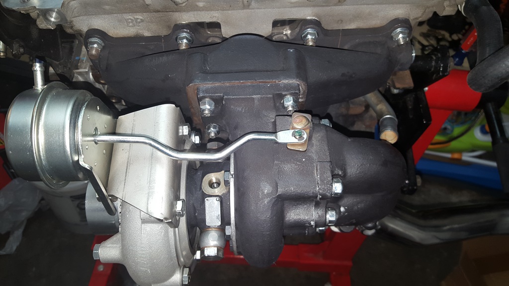 From what little I've read about the differences in the manifolds, there's about 10mm of difference in the location of the downpipe. I'm also having an issue lining up the hard lines, so I'm just gonna switch manifolds. :shrug: