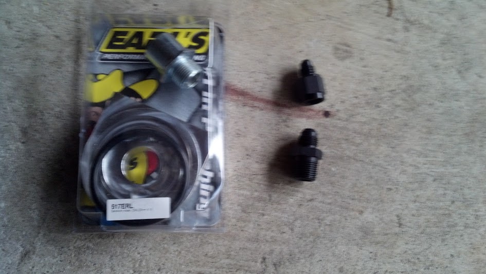 9 - Earl's sandwich filter adapter. $30 shipped. 2 x 3/8 NPT ports. No thermostat element.