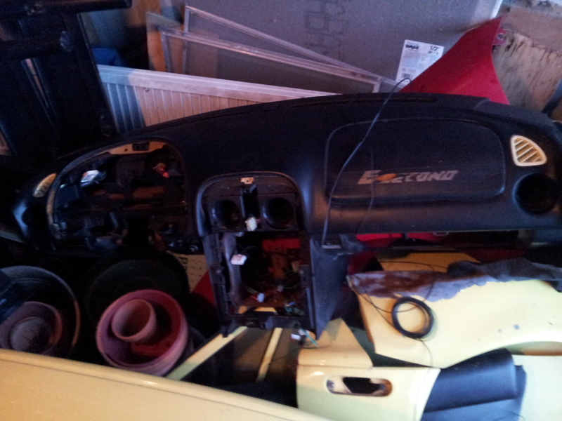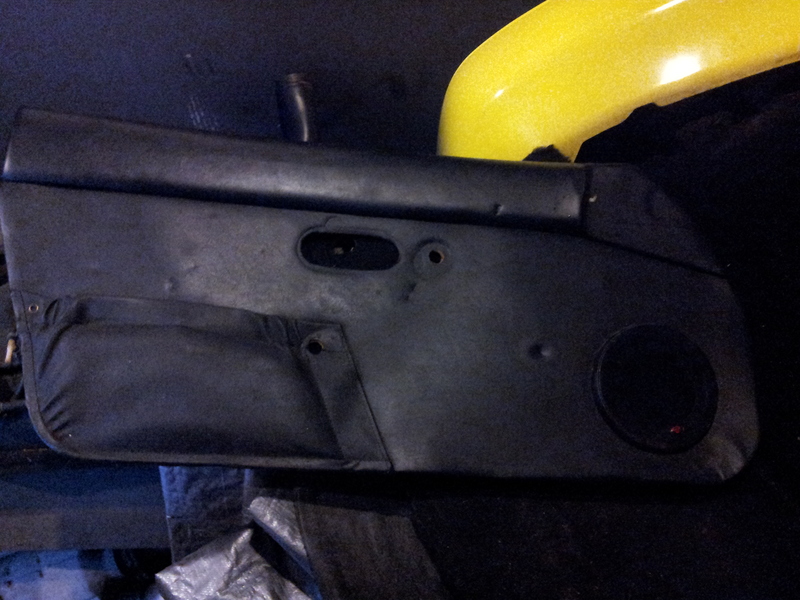 So unfortunately I didn't get a chance to dig through boxes to find the steering wheel or fuse box mount, but I did snap a few photos of the interior bits I was asked for. Note: Everything is dirty and looks worse than it is. The blemishes in the door cards are just dimples from sitting against other parts and should smooth out. The dash shot shows the one crack, about an inch long at the bottom left hand corner of the airbag cover. The cover itself is crap.