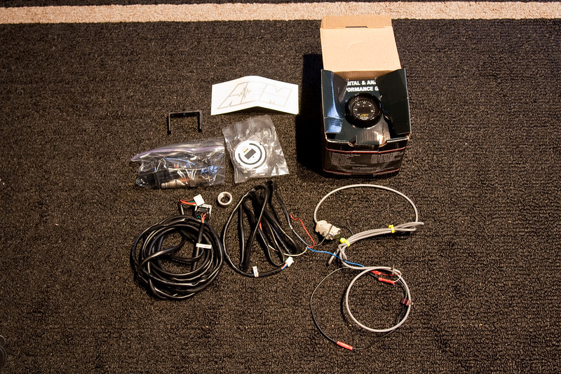 AEM wideband O2 sensor. This is also nearly brand new -- it was in the car for about 800 miles. Includes everything it came with new, including the silver trim ring and white faceplate. Also includes soldered serial plug on the blue (serial out) wire, ready to be connected to a standalone that supports digital serial wideband input. I'm also including a replacement stainless steel sensor bung, since of course the one that came with it is now welded onto my exhaust