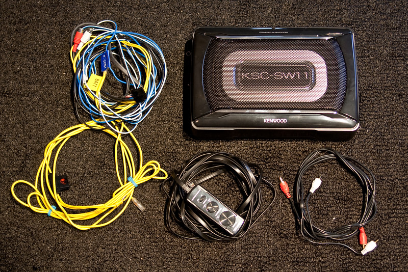 JVC KSC-SW11 compact subwoofer. 75W RMS, 150W max. Includes a remote to set subwoofer volume, crossover frequency, and phase. This is also practically new -- it was in the car for about 800 miles like the above. This fit perfectly behind the passenger's seat in my '99, and the passenger's seat only lost one click of front-to-back adjustment. It was more than adequate to fill in the low end of my music. I usually kept the subwoofer volume level set at around 40% -- there was way more power available than I needed. $130 shipped - SOLD.