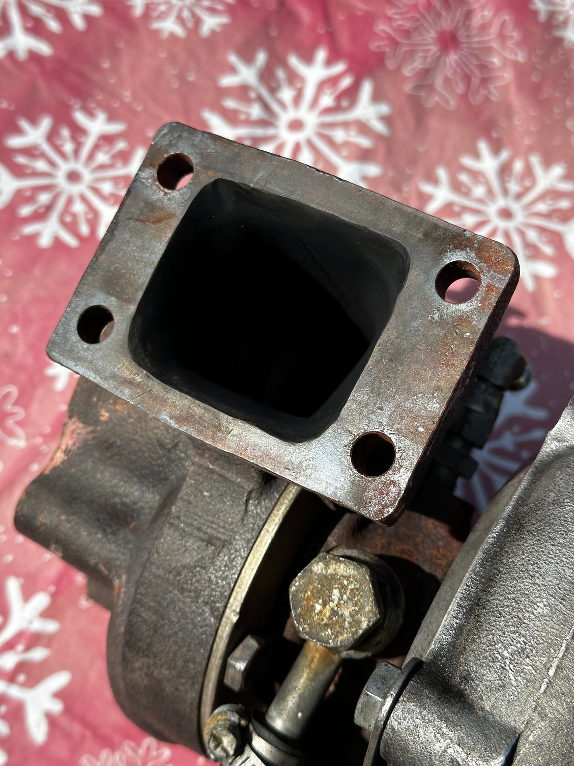• $100 - eBay T25 Manifold, Custom 2.5" downpipe (5 bolt t25 flange inlet to V-band outlet), Generic Muffler Shop crushbent 2.5" midpipe that bolts to the stock muffler location/2-bolt flange. One of the threads on the outlet of the manifold is in rough condition, but was sufficient to do its job. Just want to be mindful when torquing the nut. The downpipe will require rear shelf modification to fit. Local Pickup Only.
