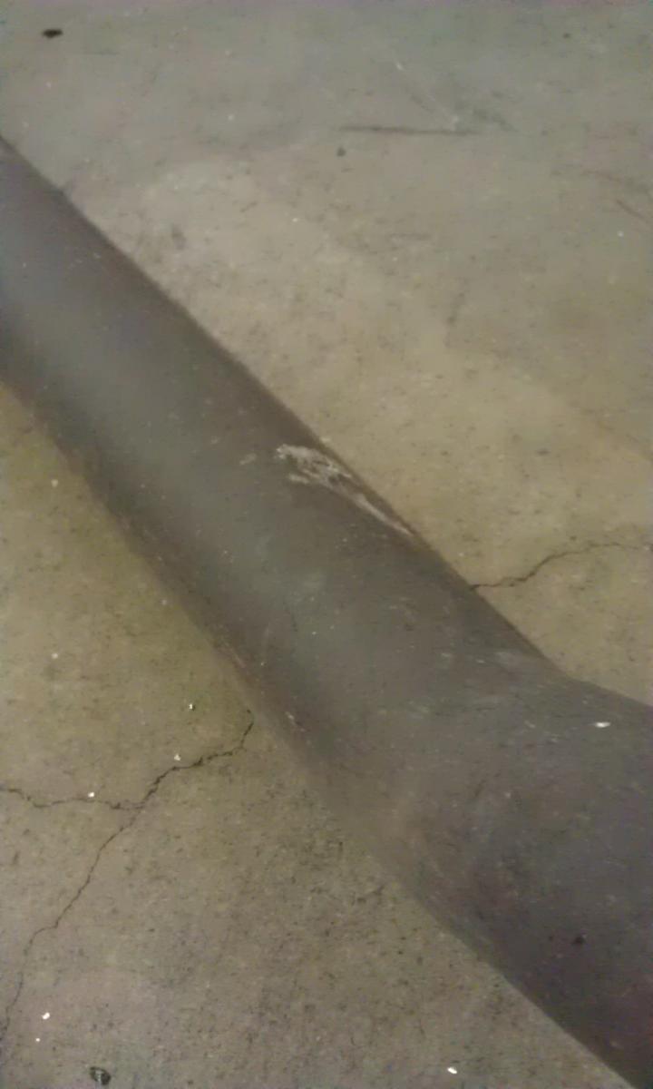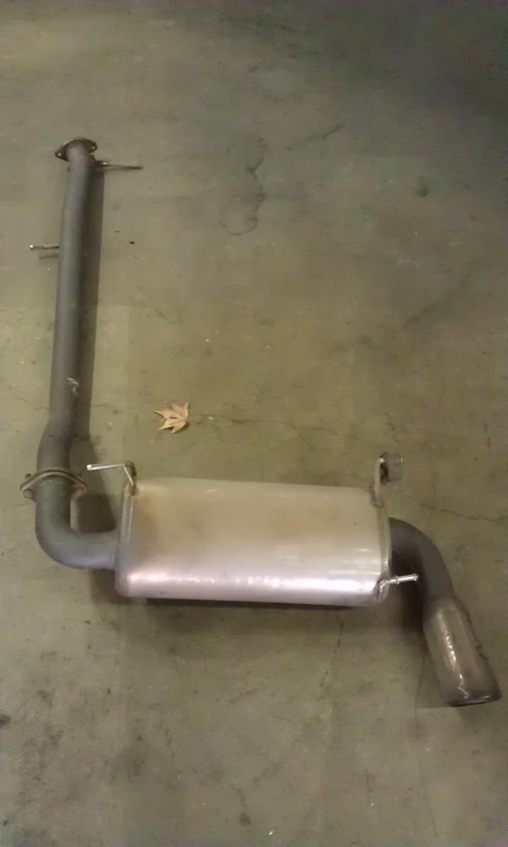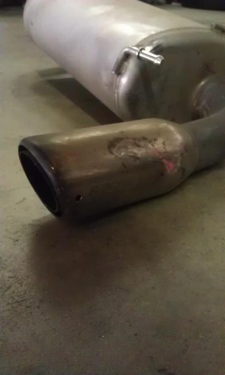 This is a track-rat exhaust, so it's dirty and banged up in a few places, but it's 100% functional - there are no cracks and all the exhaust hangars are still there.