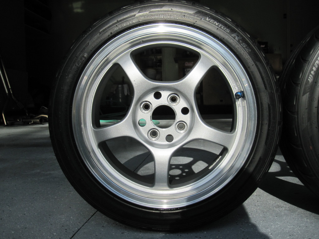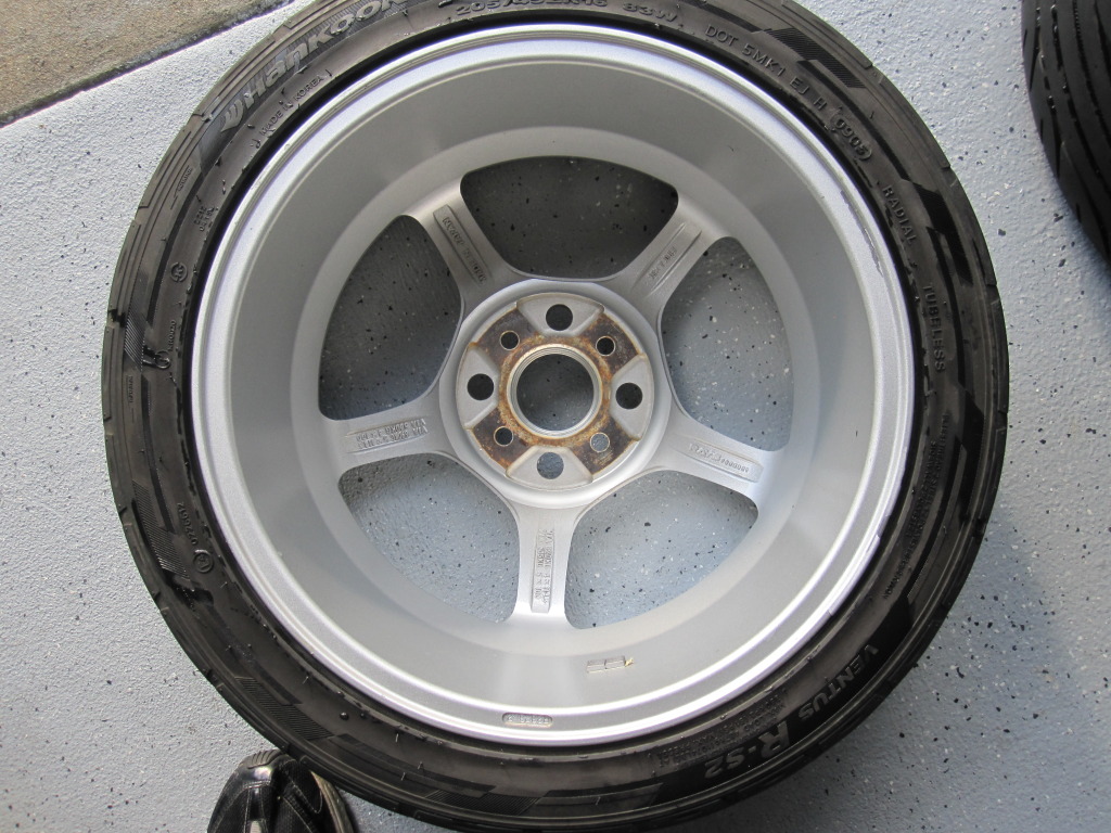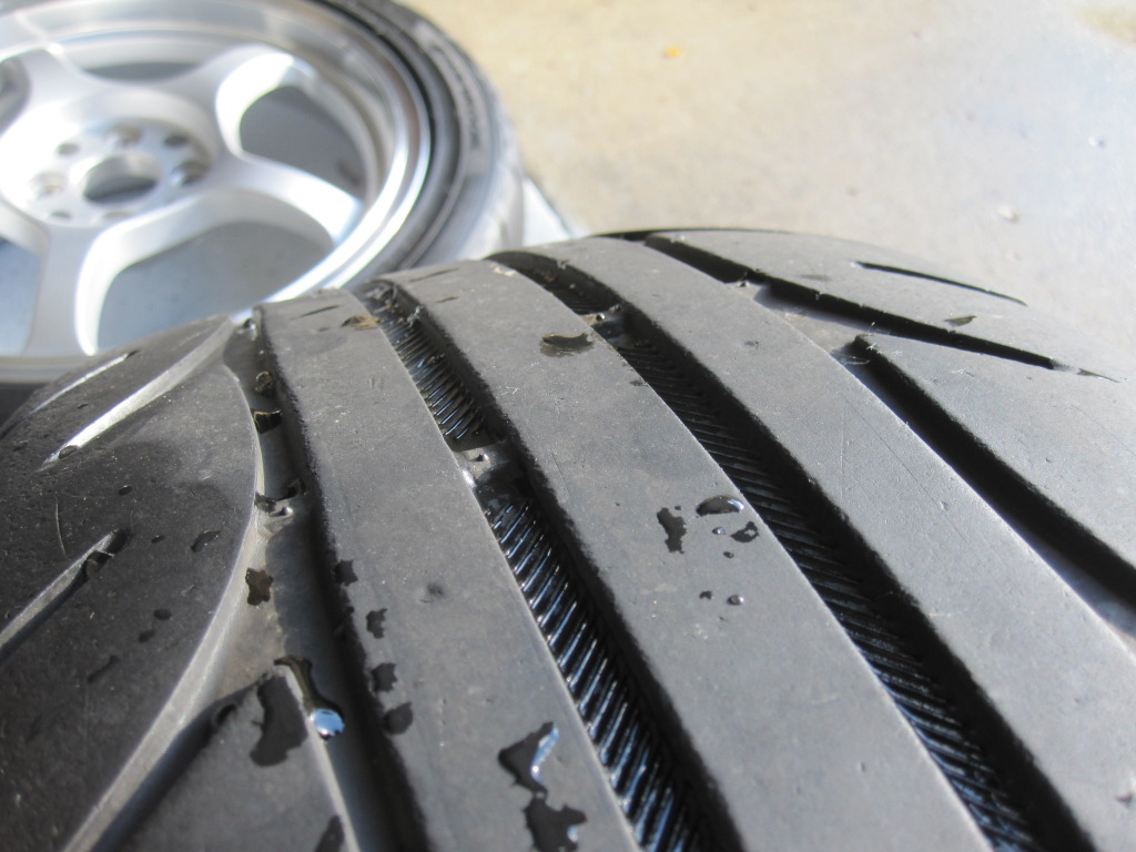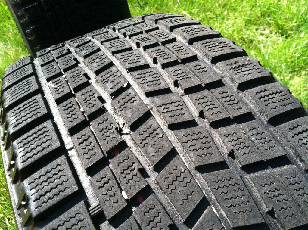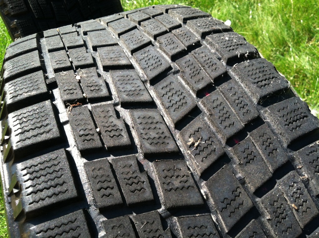 These aren’t the lightest wheels out there but they aren’t bad – I believe they are something like 16 lbs. each. They currently have RS-2’s mounted on them but they don’t have a whole lot of life left – about 1/16” depth to the wear bars.
