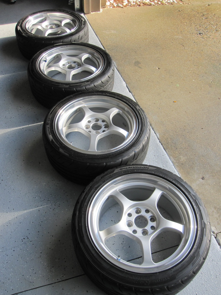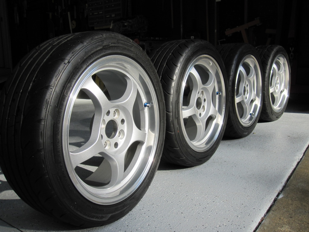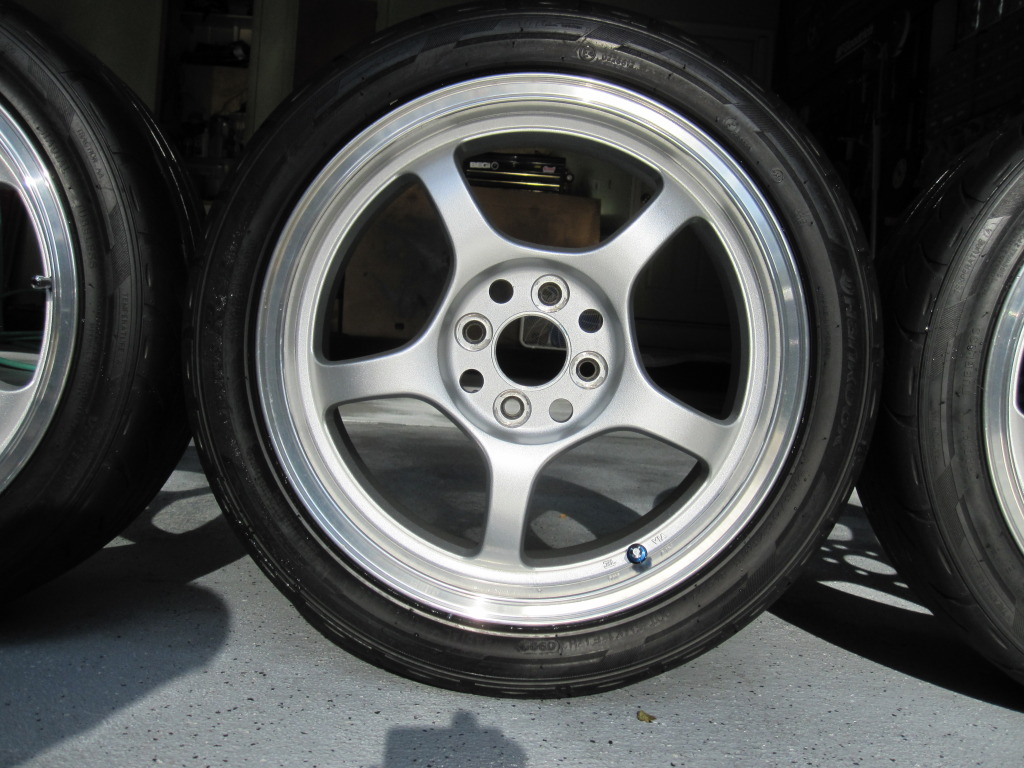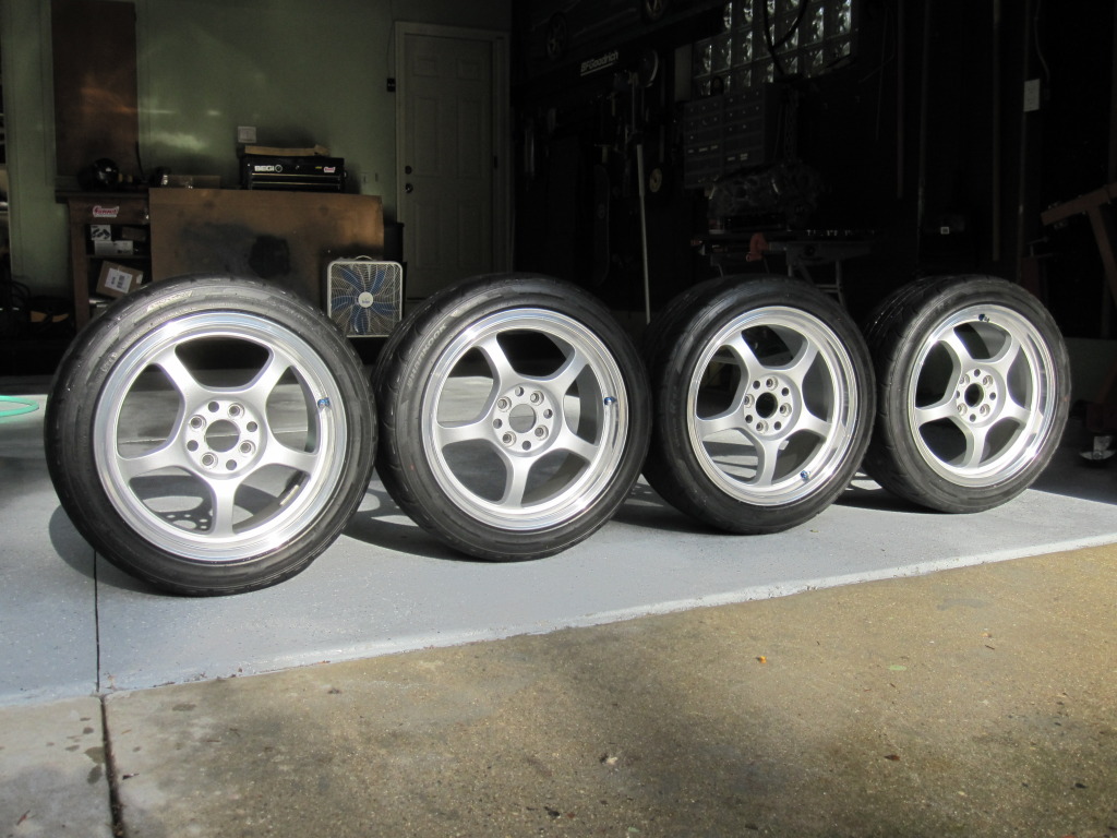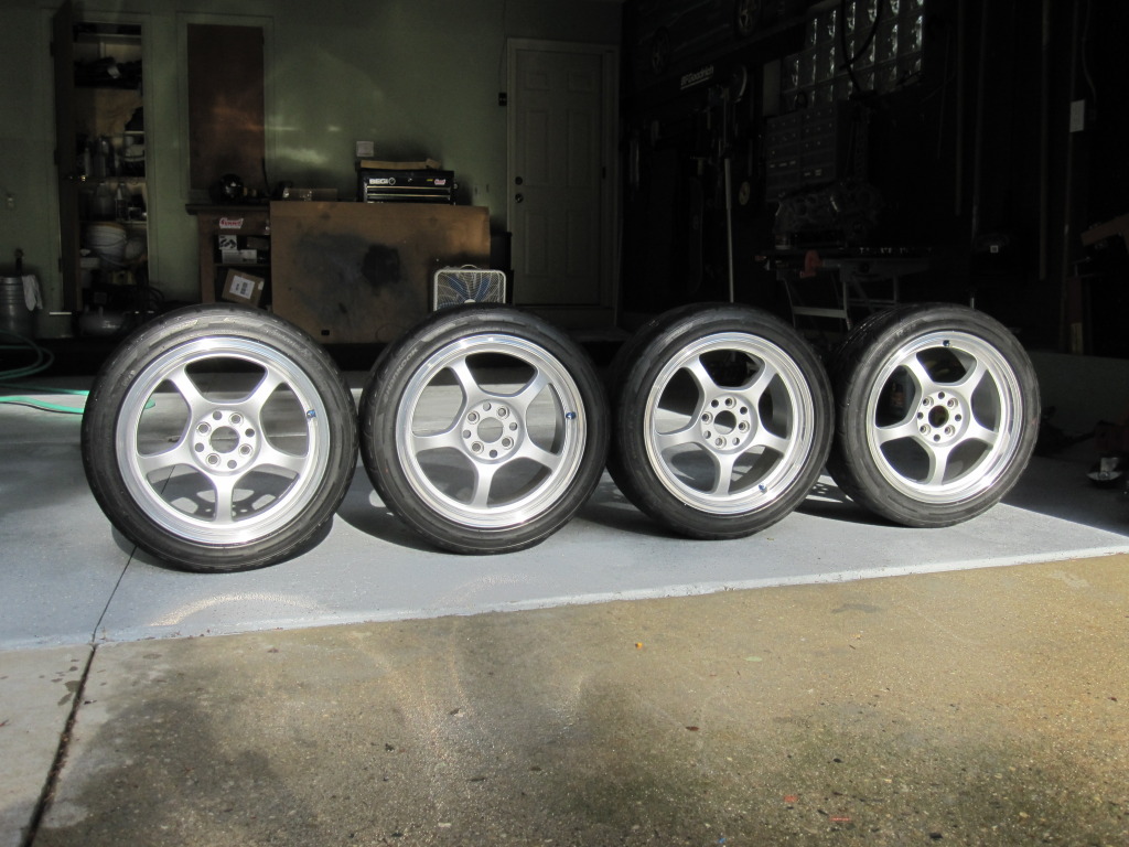 These aren’t the lightest wheels out there but they aren’t bad – I believe they are something like 16 lbs. each. They currently have RS-2’s mounted on them but they don’t have a whole lot of life left – about 1/16” depth to the wear bars.