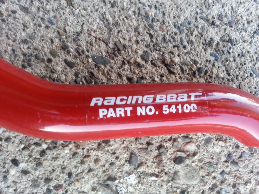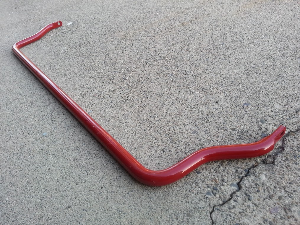 The diameter of the Racing Beat front bar is 15/16", and weighs 10 lbs. (Stock - .3/4" diameter, 6 lbs.) and features one (1) endlink attachment hole. Each sway bar is supplied with replacement urethane bushings, Prothane grease, and detailed installation instructions.