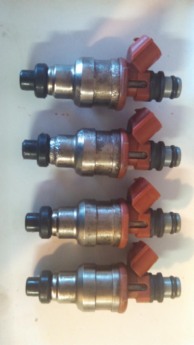 Red top high impedance RX-7 injectors 460cc. Part# 195500-2010. Ultrasonically cleaned and all new seals, donuts and filter baskets 500 miles ago. I got EV14 injectors for cheap and don't need these any more. They worked great before I pulled them.