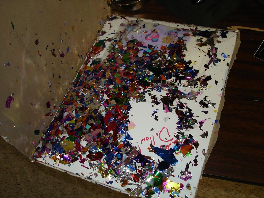 I was able to prevent most of the glitter from going everywhere somehow, but some escaped.