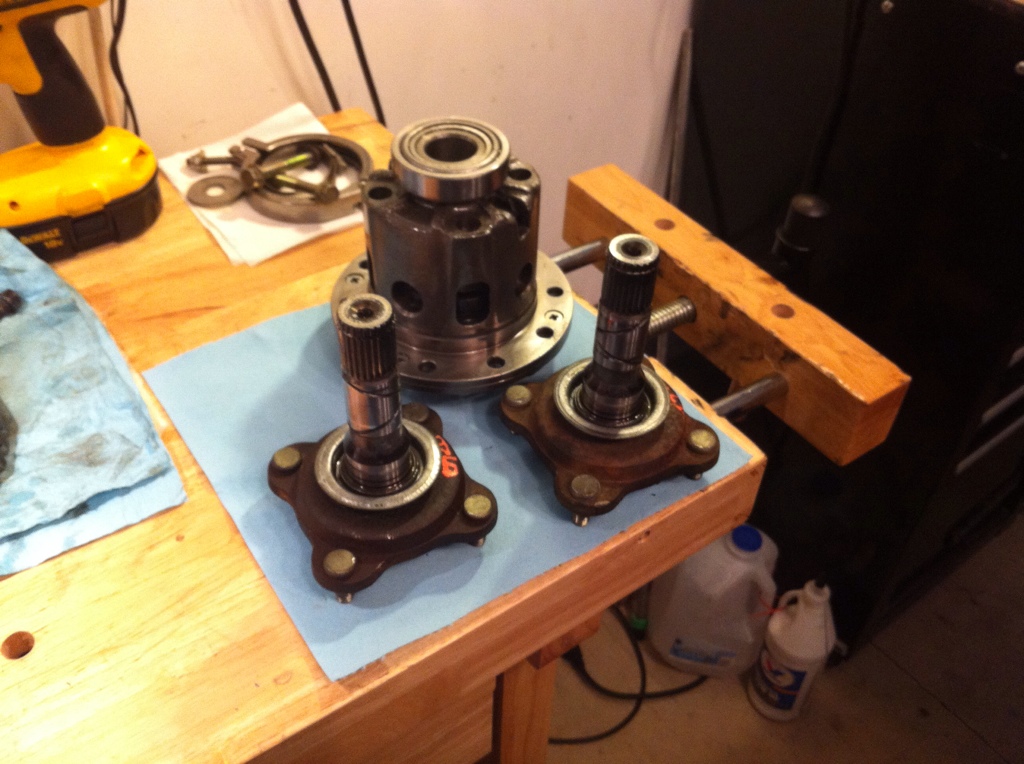 Two RX-7 stub axles with RX-7 clips, the LSD itself with two bearings and ONE outer race.
